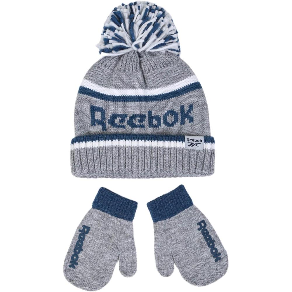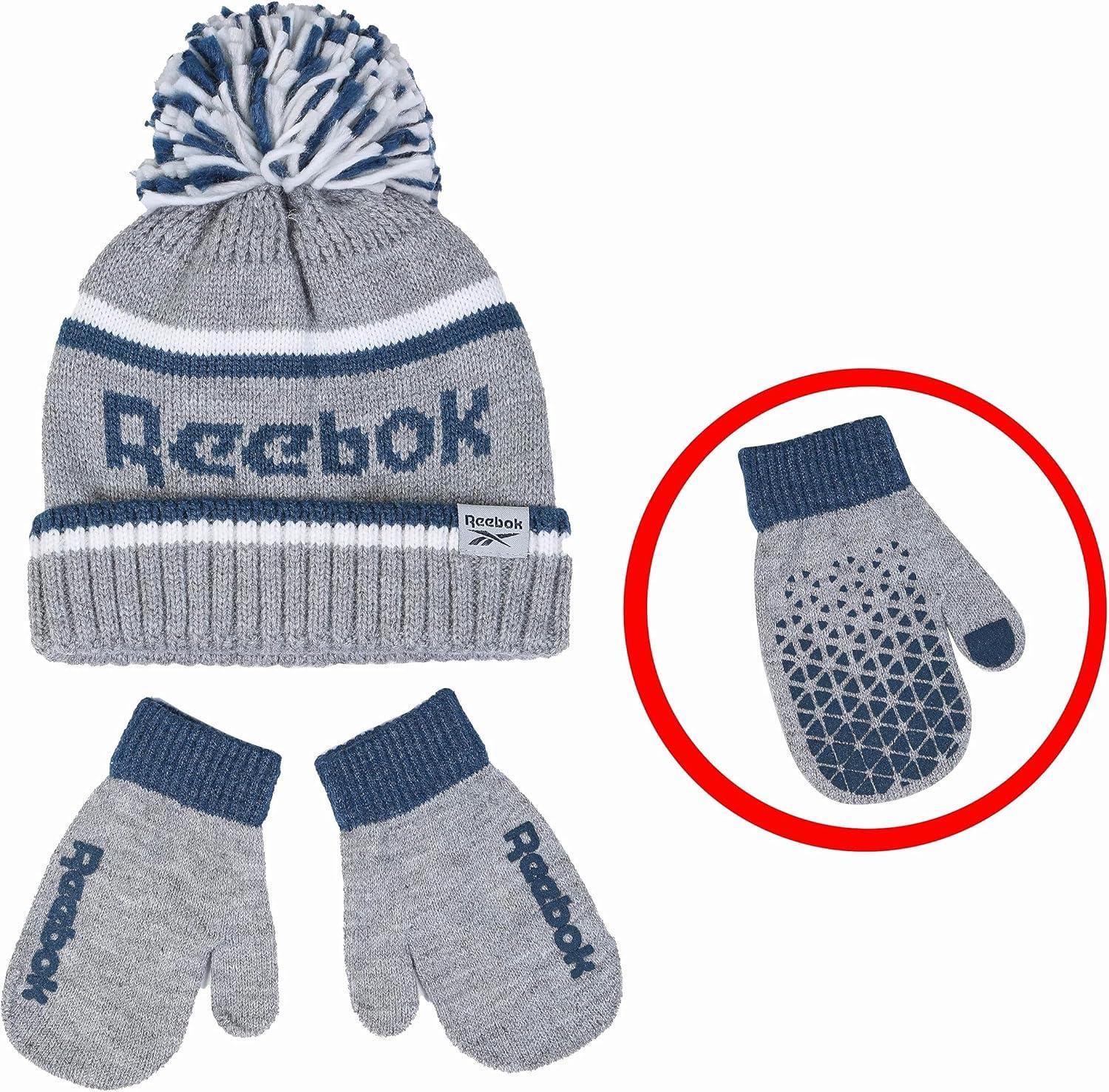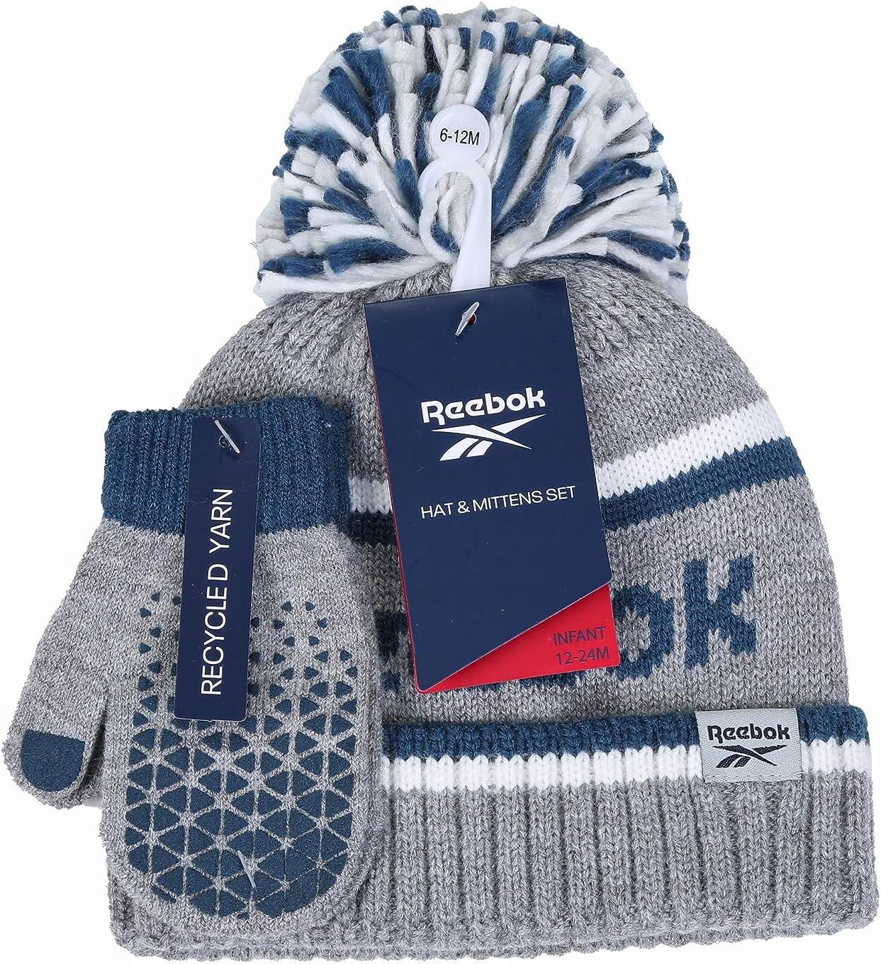 Stay Warm and Stylish with the Reebok Infant/Toddler Beanie and Gripped Mittens Set!