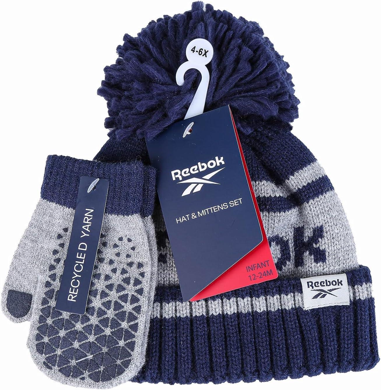 Stay Warm and Stylish with the Reebok Infant/Toddler Beanie and Gripped Mittens Set!