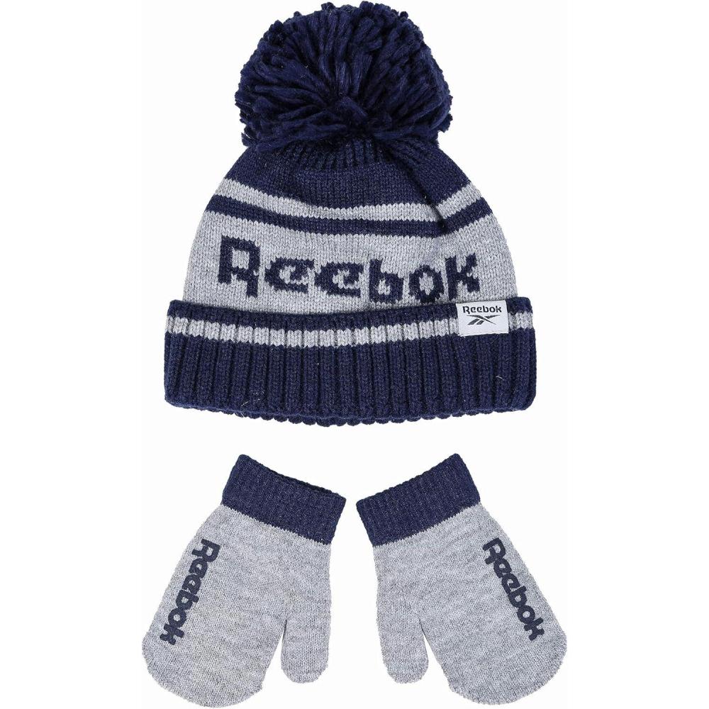 imageReebok 2Piece BabyToddler Winter Hat and Gripped Mittens Knitted Pom Beanie ampamp AntiSlip Gloves Cold Weather AccessoriesVector NavyLight Gray