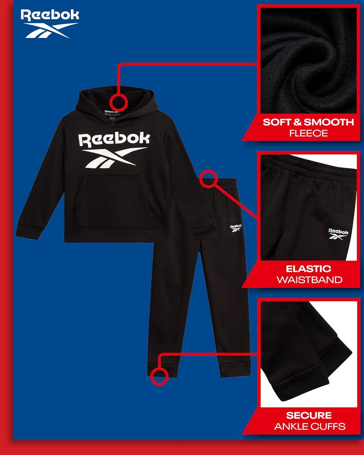 Reebok Baby Boys Pants Set – 2 Piece Pullover Hoodie and Joggers Jog Set – Cozy Fleece Play Wear Pant Sets for Toddler Sizes(Black)