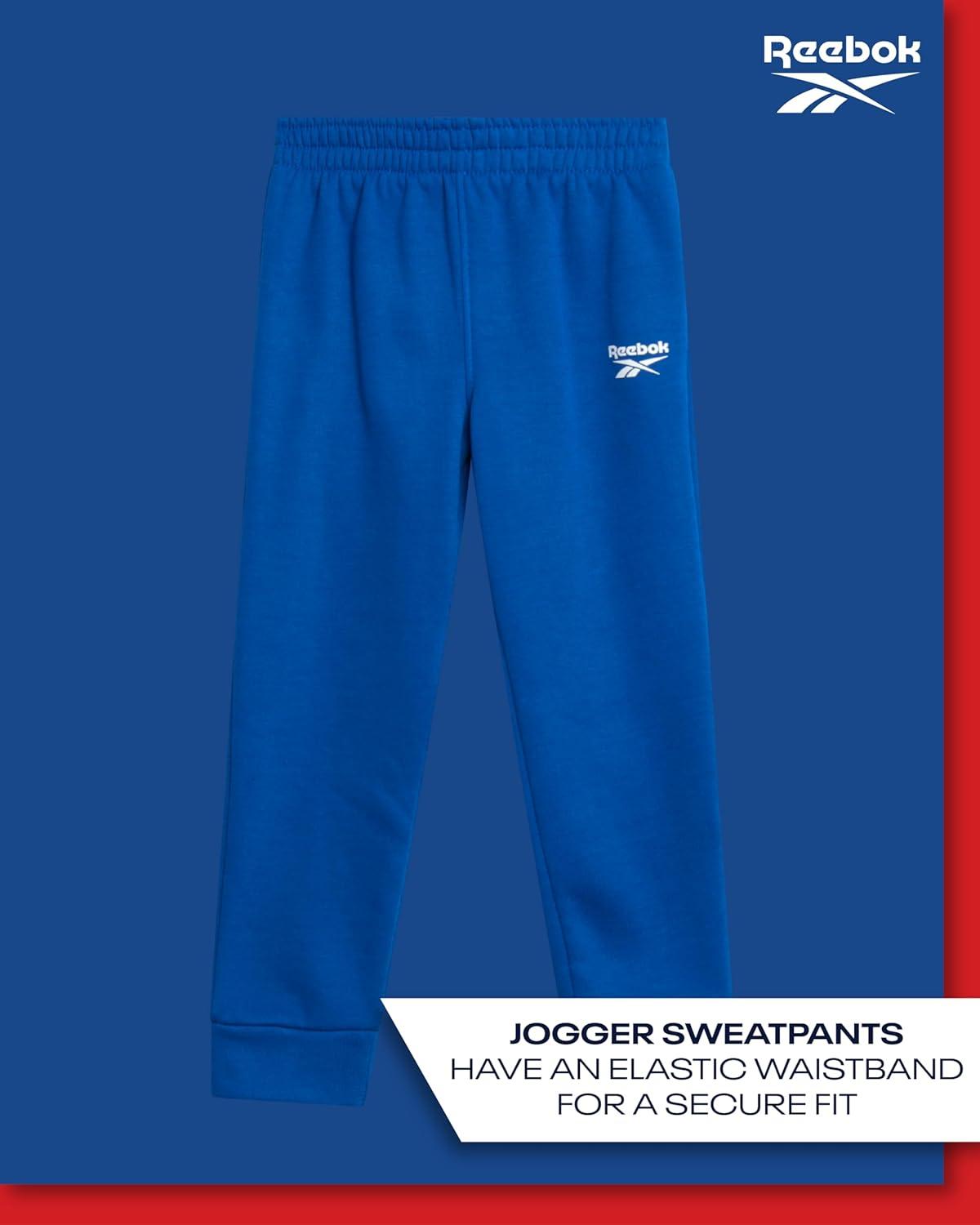 Reebok Baby Boys Pants Set - 2 Piece Pullover Hoodie and Joggers Jog Set - Cozy Fleece Play Wear Pant Sets for Toddler Sizes(Vector Blue)