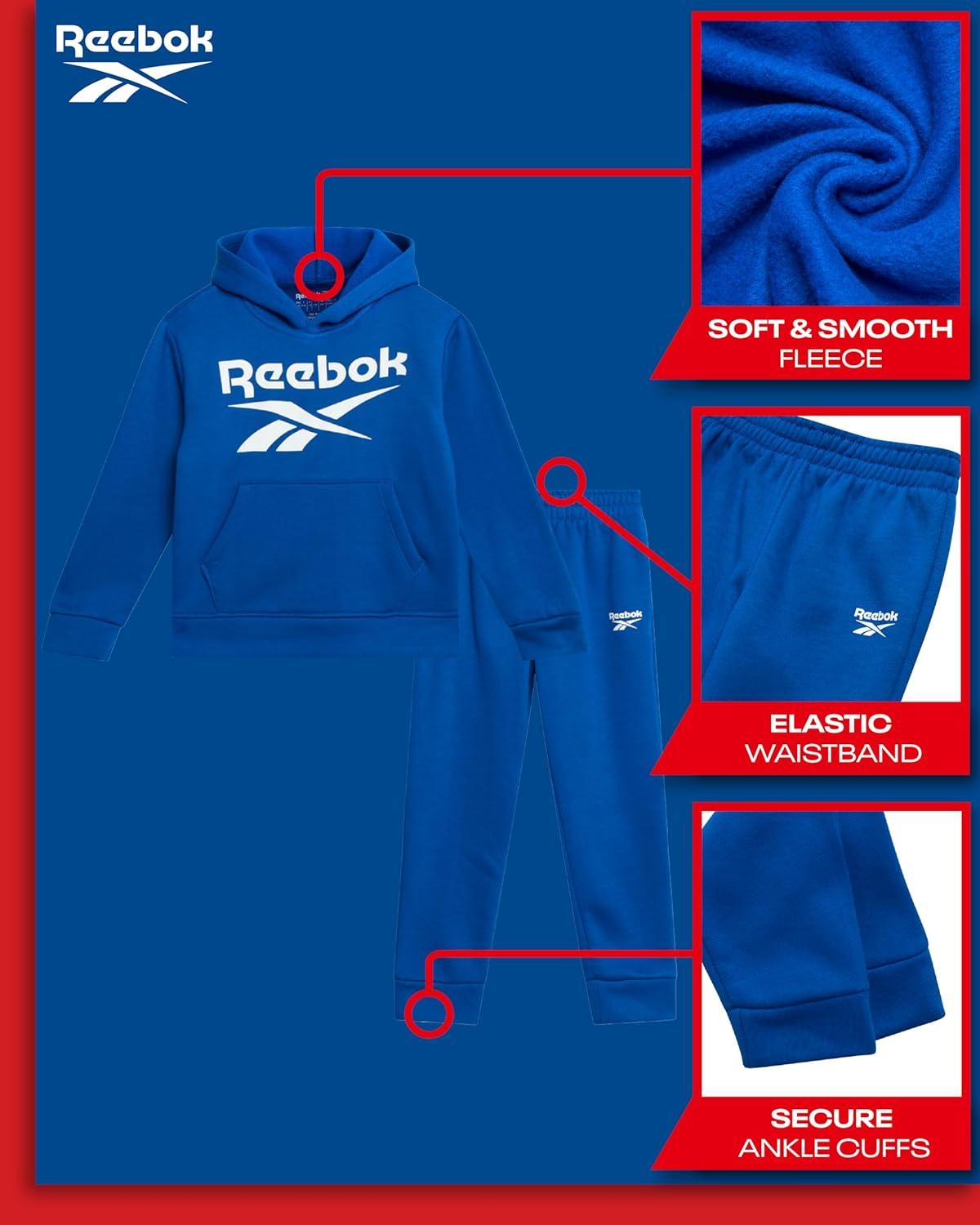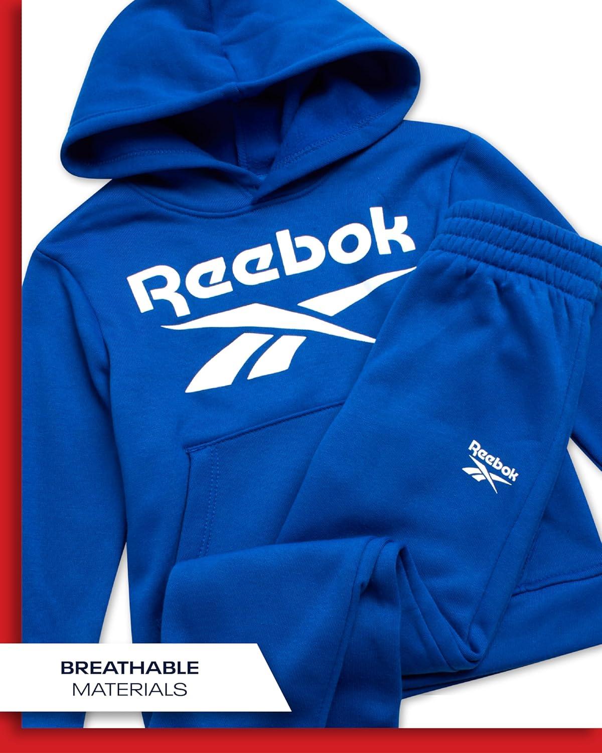Reebok Baby Boys Pants Set – 2 Piece Pullover Hoodie and Joggers Jog Set – Cozy Fleece Play Wear Pant Sets for Toddler Sizes(Vector Blue)