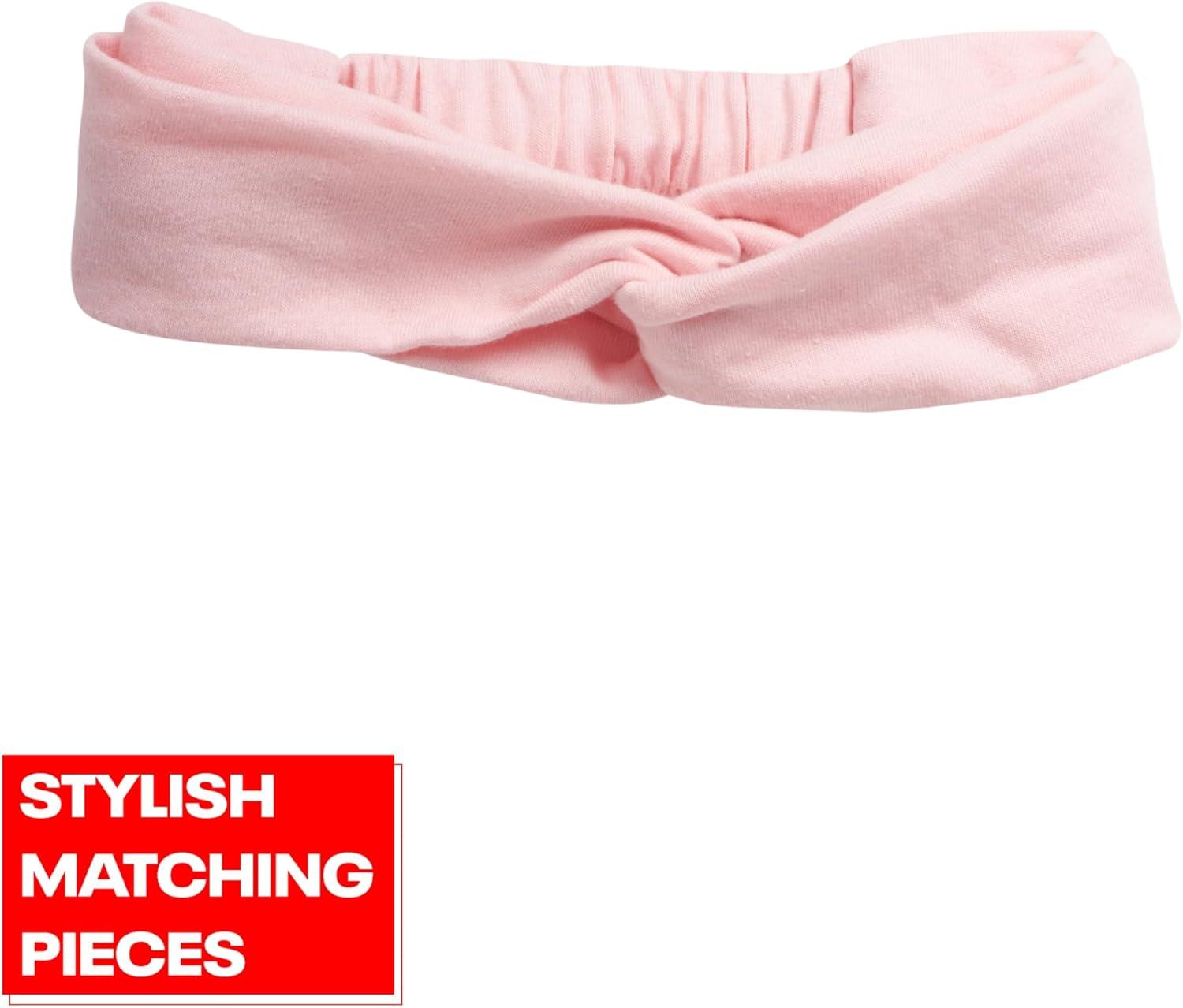 Reebok Baby Girls’ Bodysuit – Long Sleeve One Piece Romper with Headband – Newborn Essentials Clothing for Infants, 0-9M(Salmon Rose)