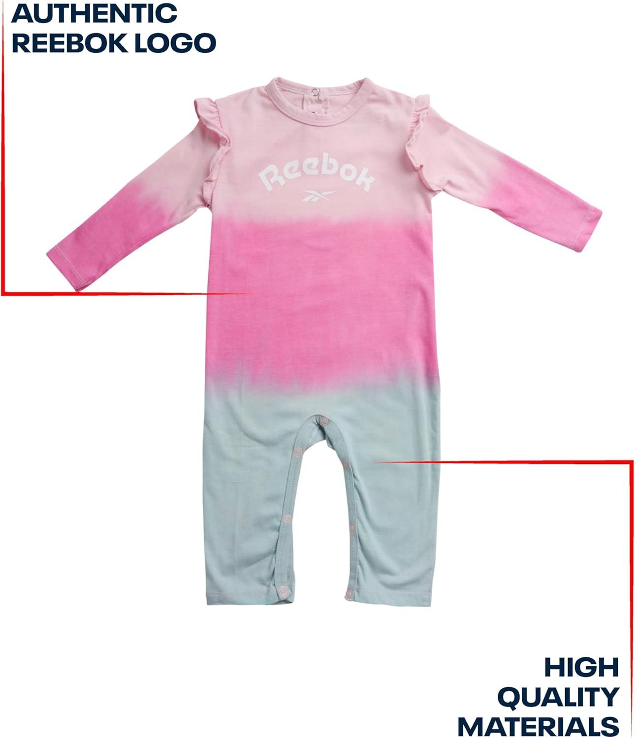 Reebok Baby Girls’ Bodysuit – Long Sleeve One Piece Romper with Headband – Newborn Essentials Clothing for Infants, 0-9M(Pink Ombre)