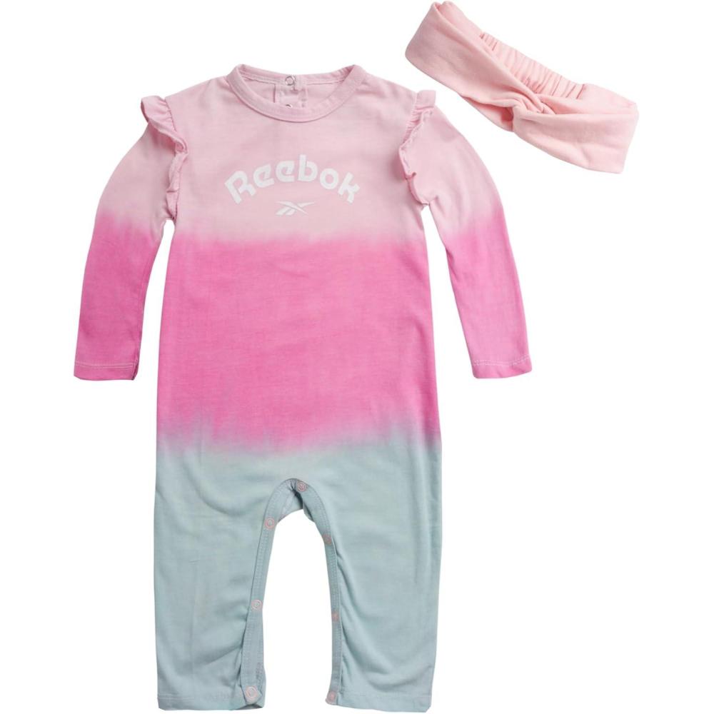 imageReebok Baby Girls Bodysuit  Long Sleeve One Piece Romper with Headband  Newborn Essentials Clothing for Infants 09MPink Ombre