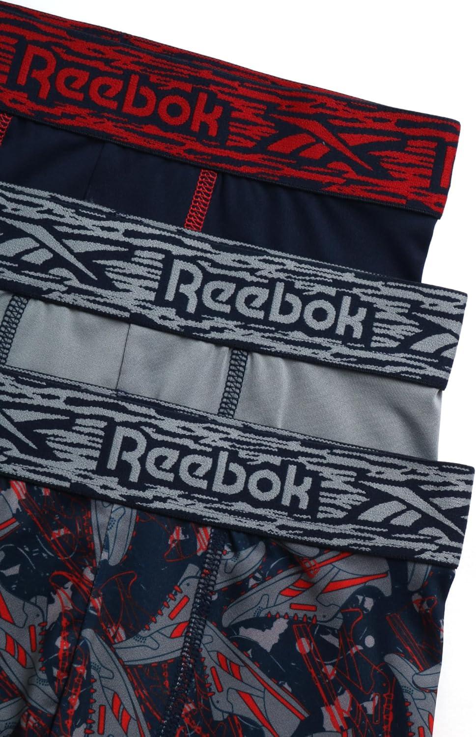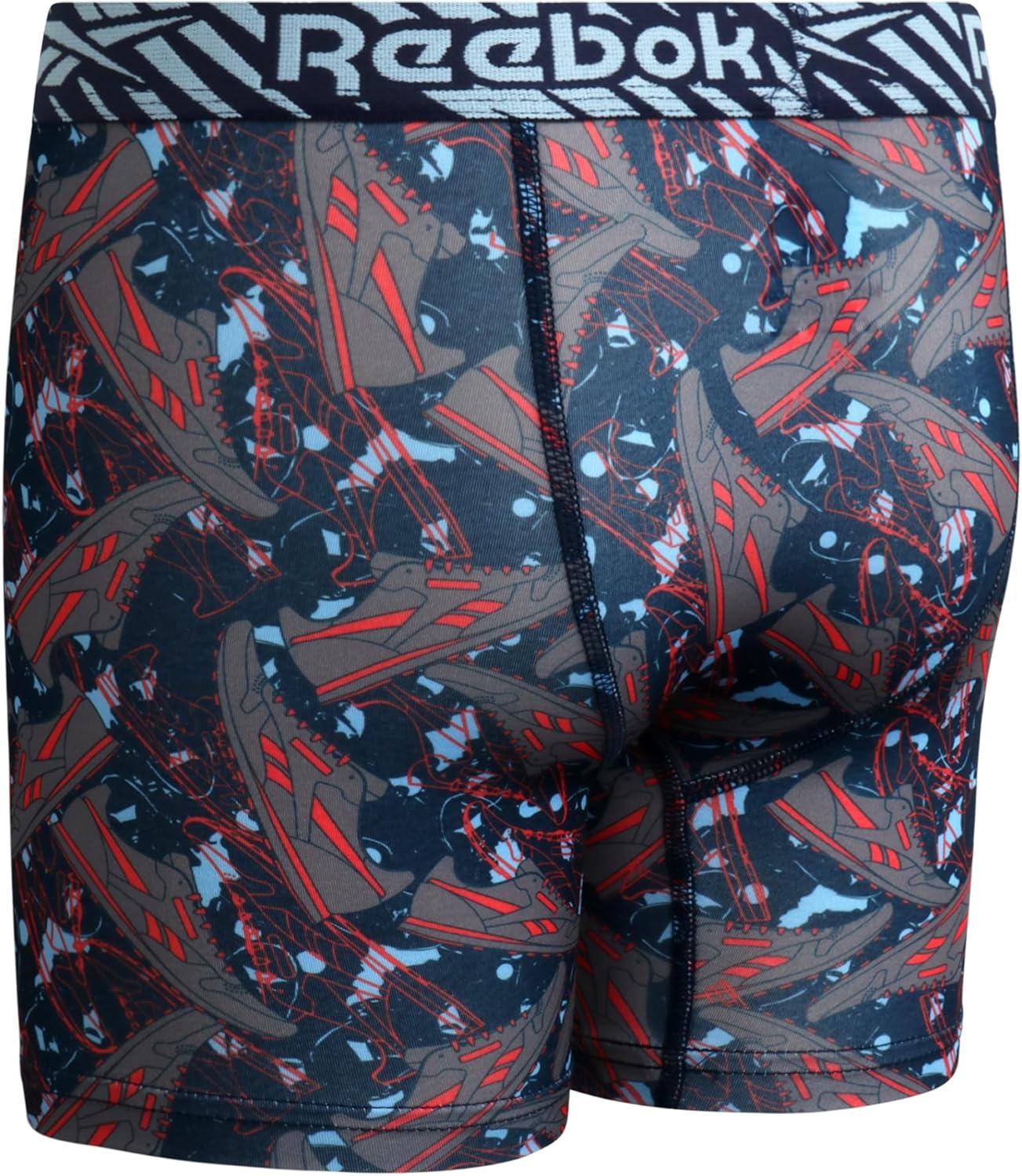 Reebok Boys Boxer Briefs - 3 Pack Performance 6” Inseam Long Leg Boxer Briefs Boys Underwear with Support Pouch (6-18)(Print/Maritime Blue/Light Grey)