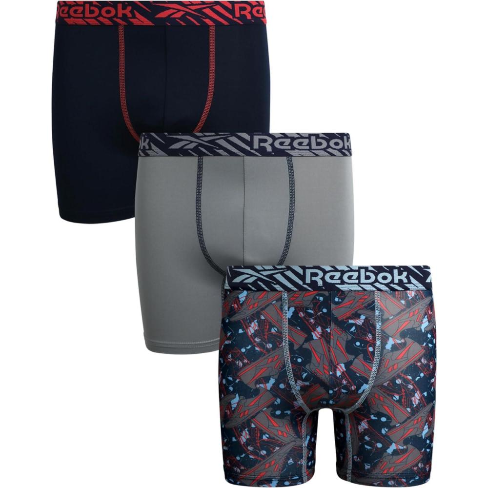 imageReebok Boys Boxer Briefs  3 Pack Performance 6 Inseam Long Leg Boxer Briefs Boys Underwear with Support Pouch 618PrintMaritime BlueLight Grey