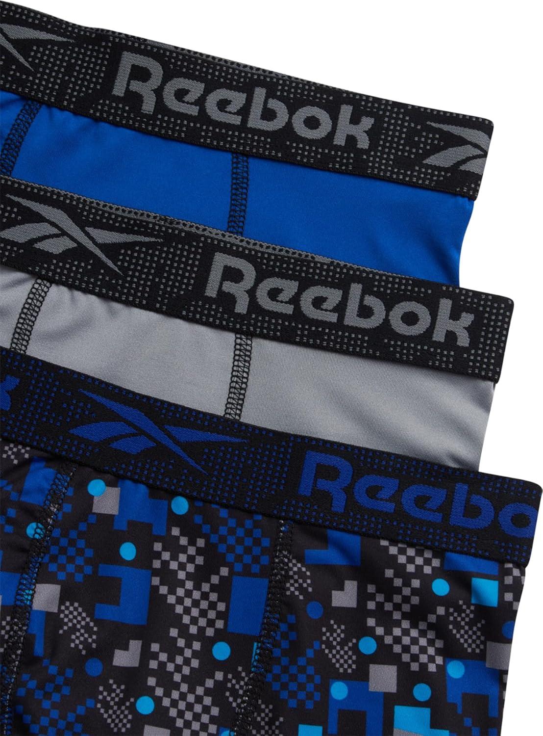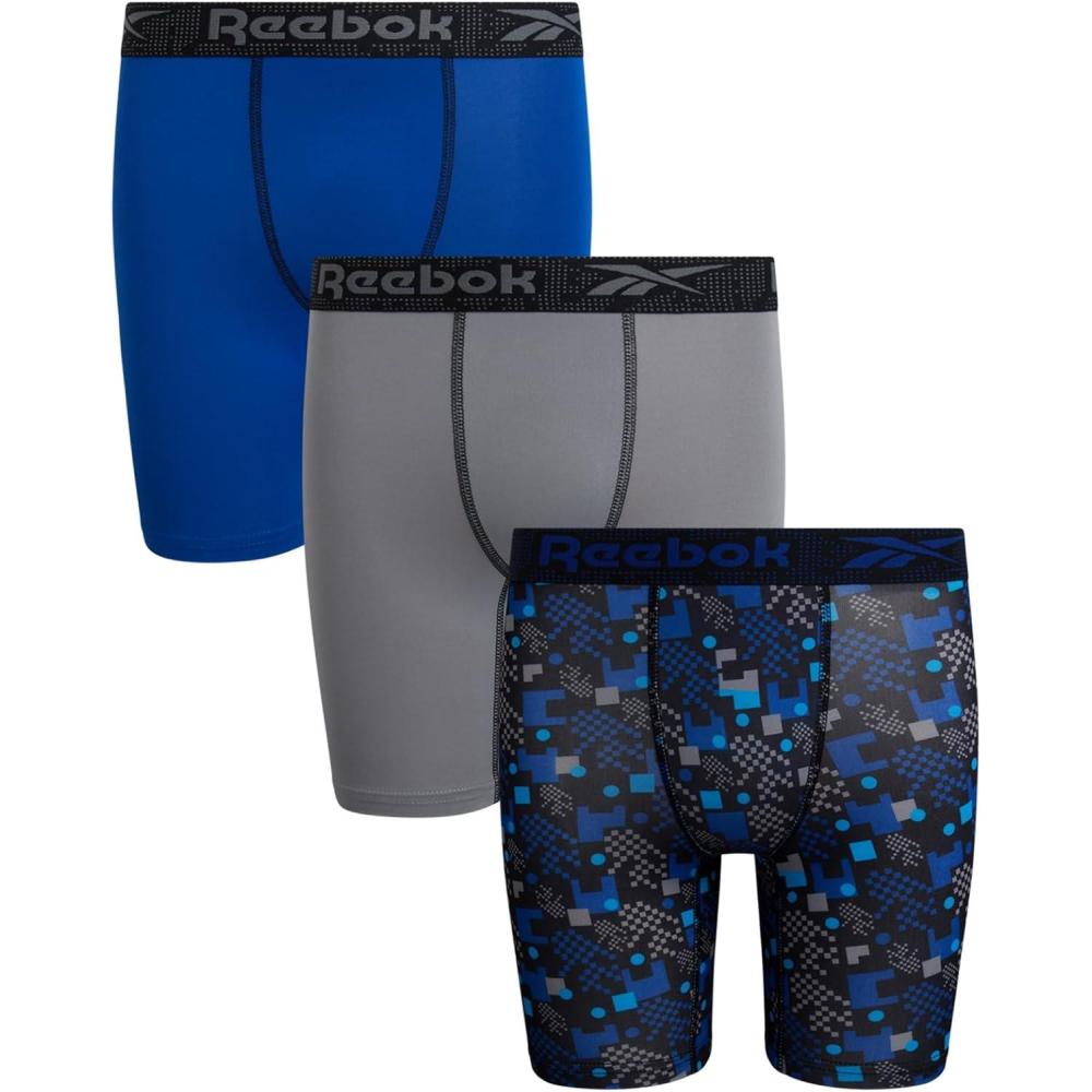 Reebok Boys Boxer Briefs – 3 Pack Performance Long Leg Boxer Briefs Boys Underwear with Support Pouch, 6” Inseam (6-18)(Sky Blue/Black/Legion Blue)