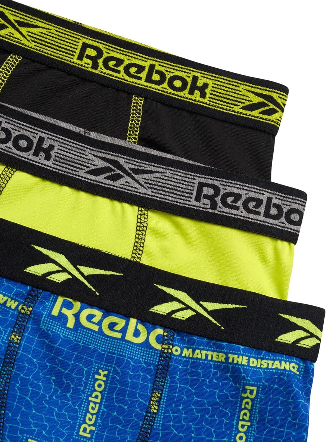 Reebok Boys Boxer Briefs - 3 Pack Performance Long Leg Boxer Briefs Boys Underwear with Support Pouch, 6” Inseam (6-18)(Surf the Web Print/Black/Evening Primrose/Black)