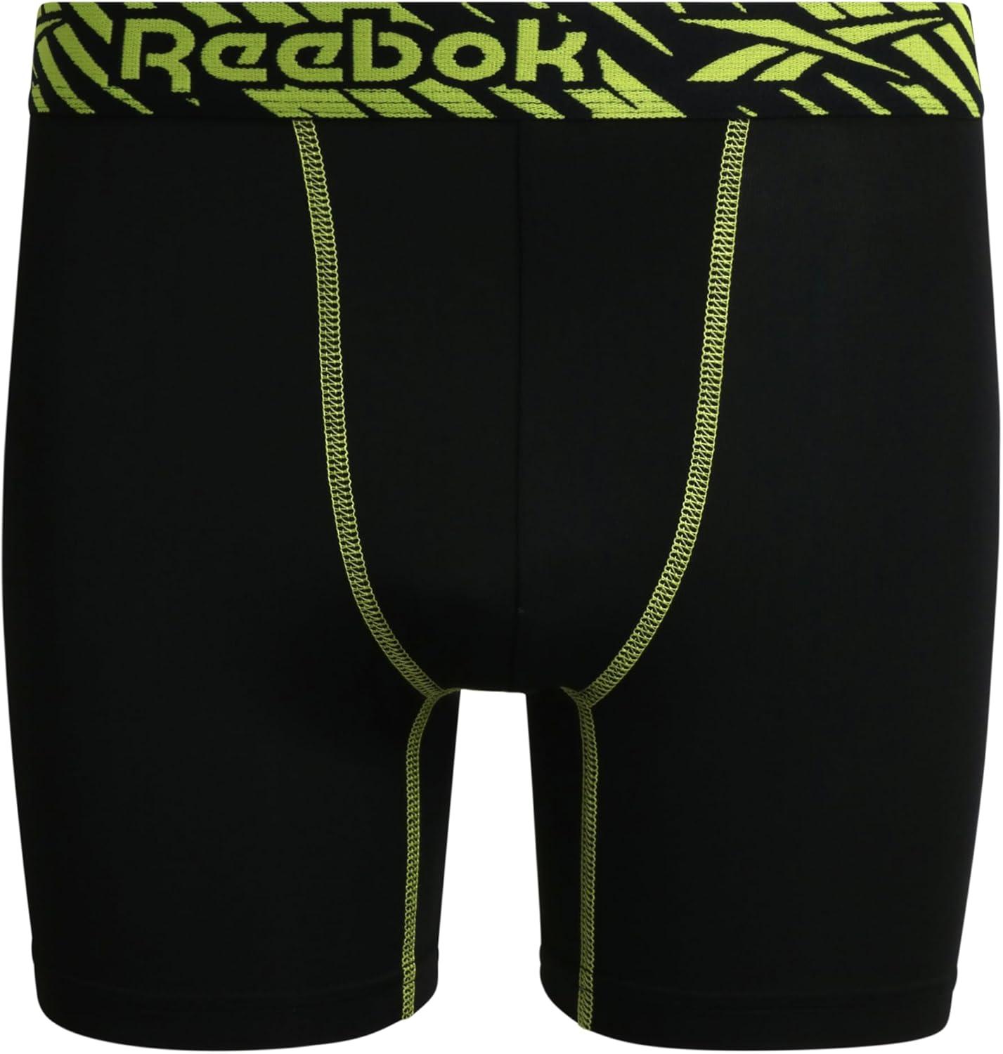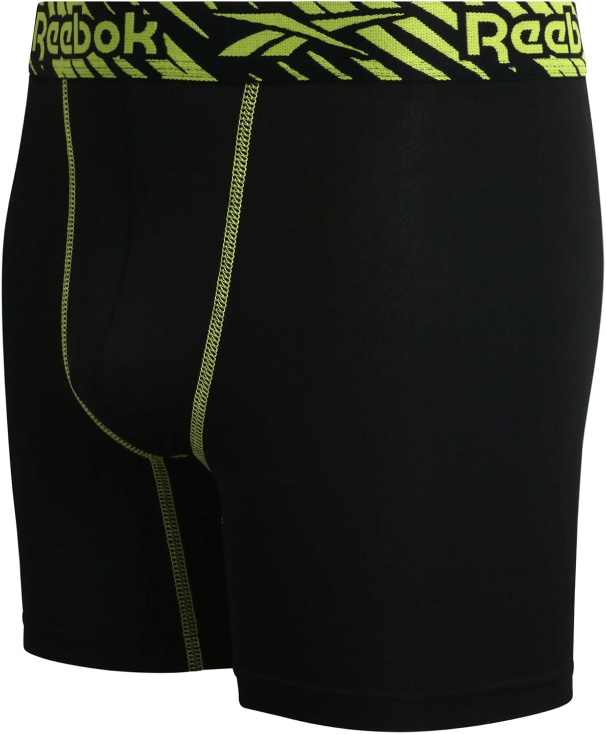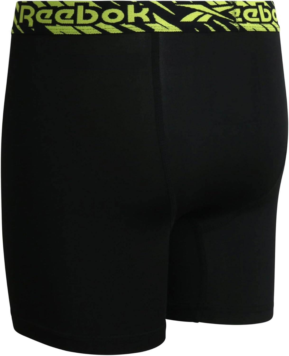 Reebok Boys Boxer Briefs - 3 Pack Performance Soft Stretch Breathable 5” Inseam Boxer Briefs Boys Underwear (6-18)(Black Print/Neon Yellow/Black)
