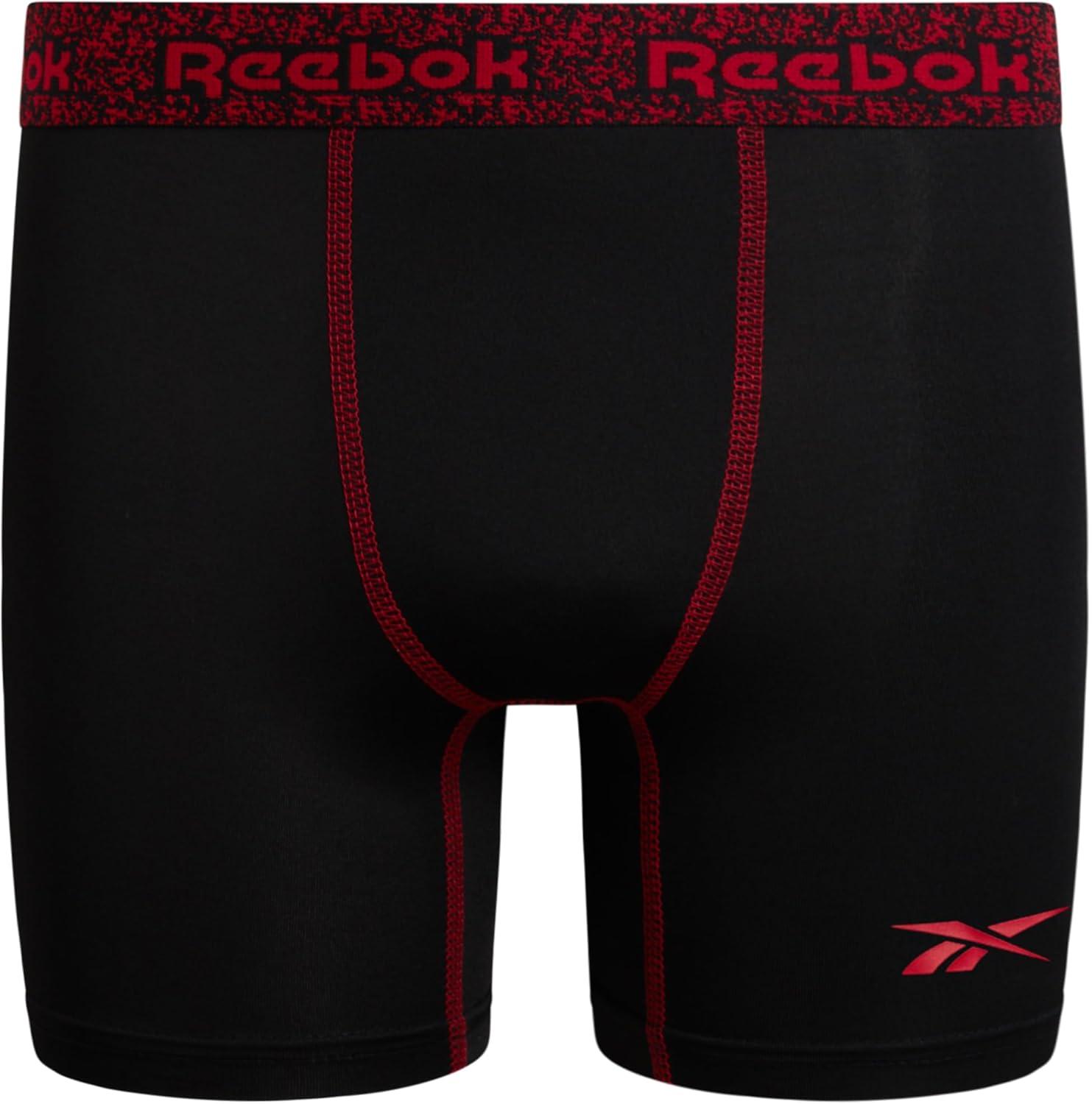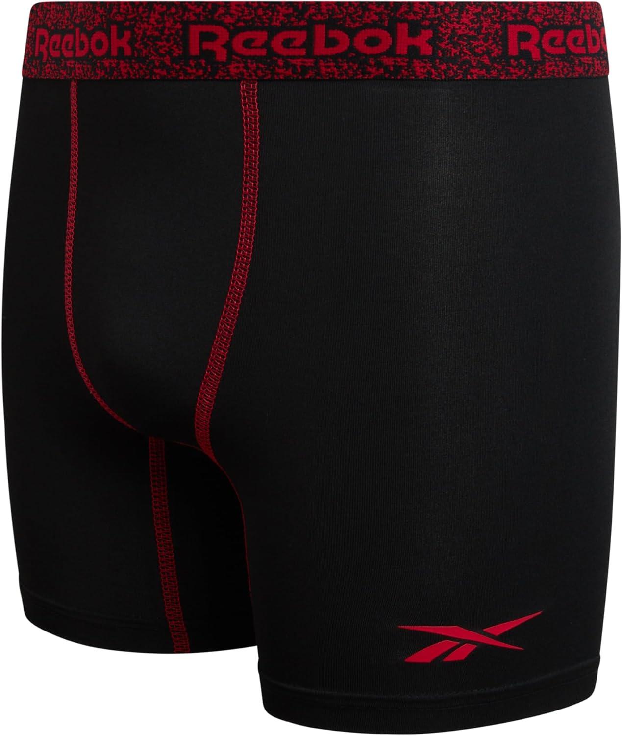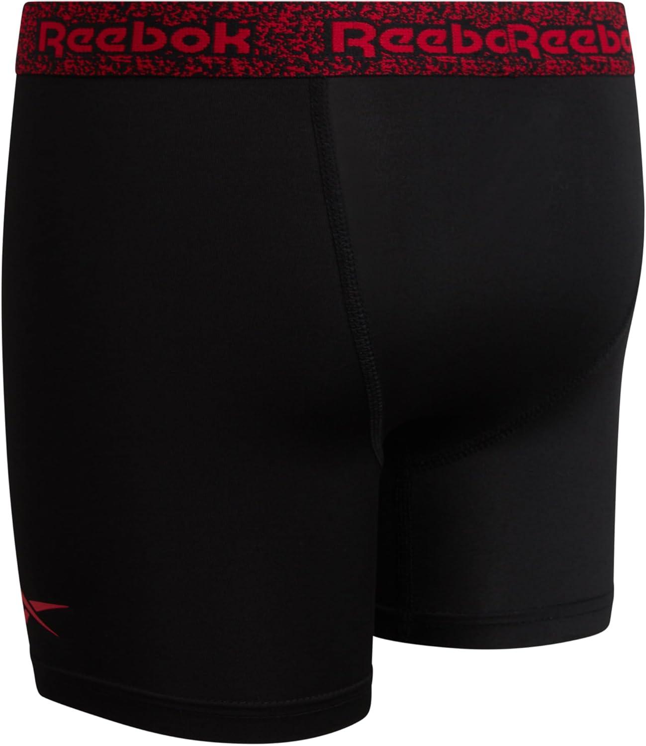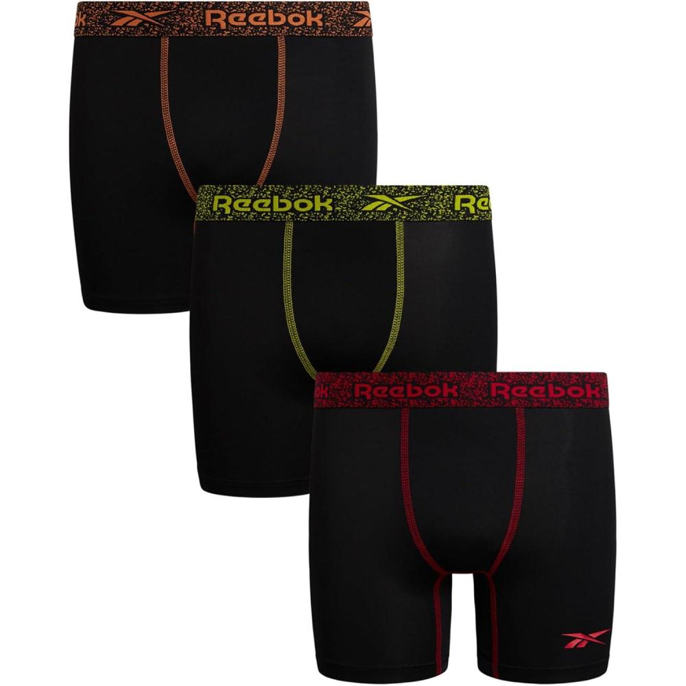 Reebok Boys Boxer Briefs - 3 Pack Performance Soft Stretch Breathable 5” Inseam Boxer Briefs Boys Underwear (6-18)(Classic Black With Contrast)