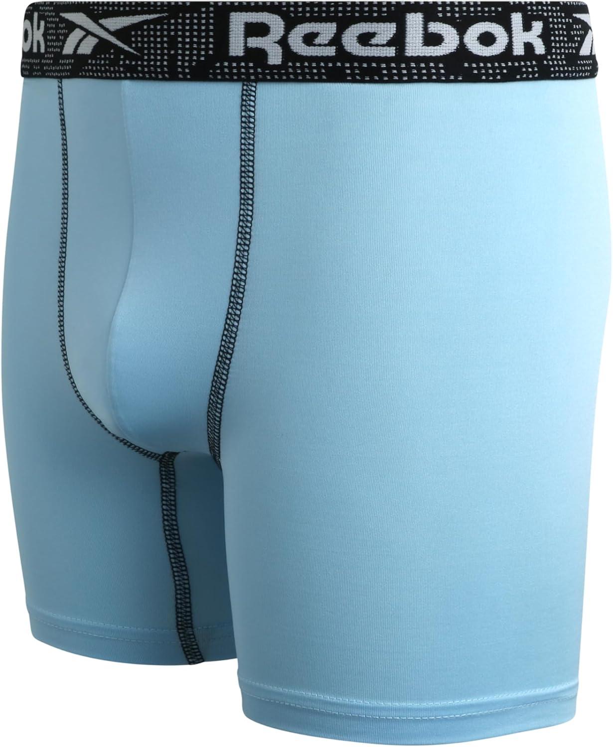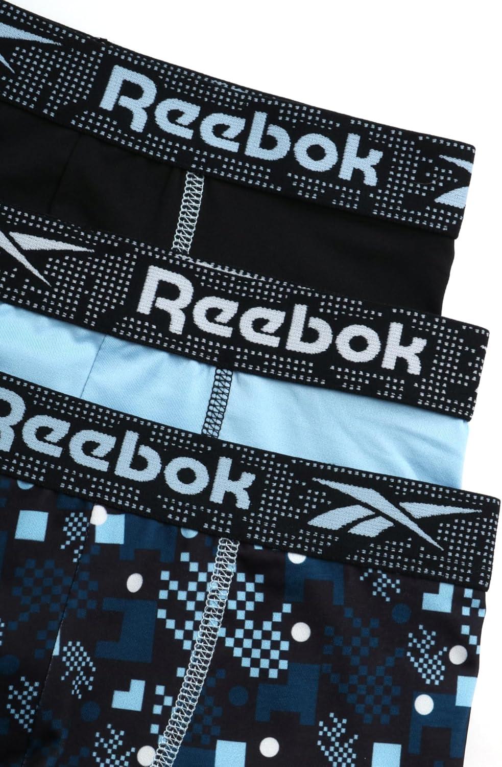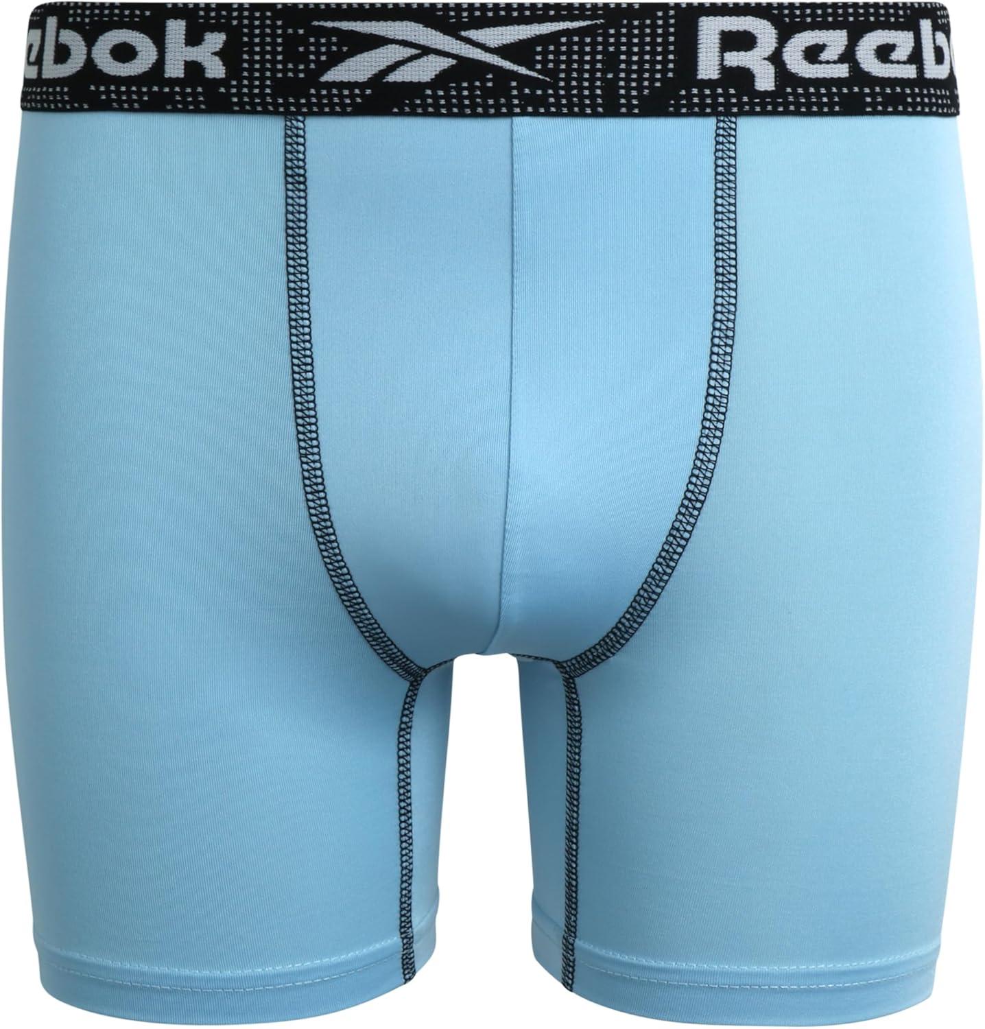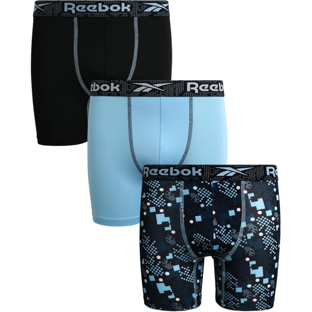 Reebok Boys Boxer Briefs - 3 Pack Performance Soft Stretch Breathable 5” Inseam Boxer Briefs Boys Underwear (6-18)(Print/Sky/Black)