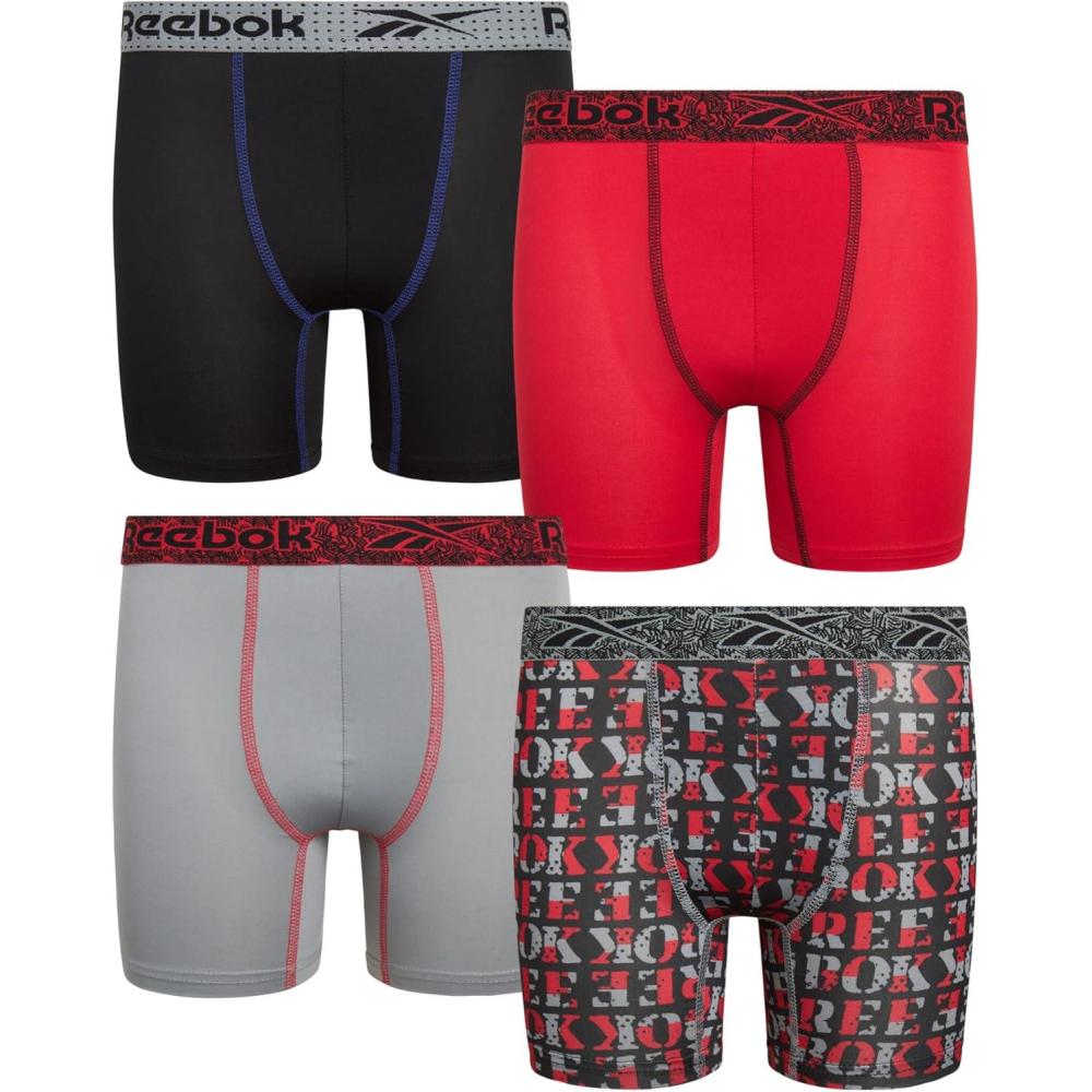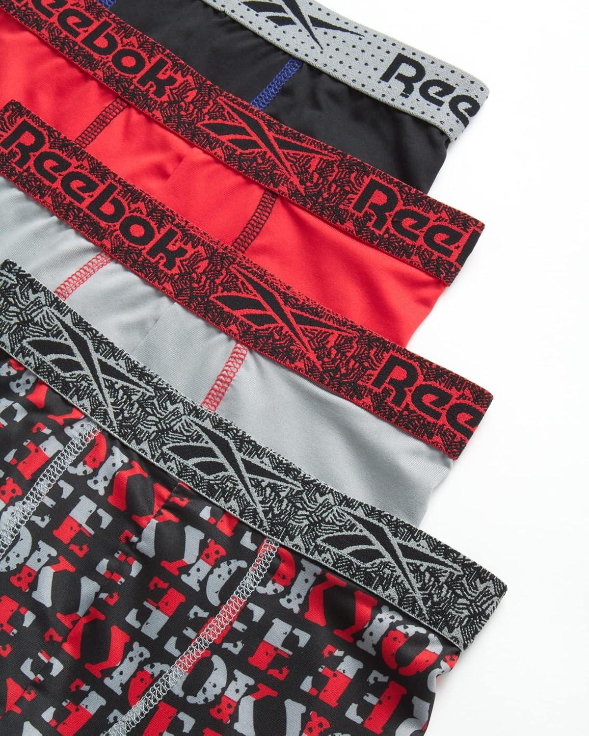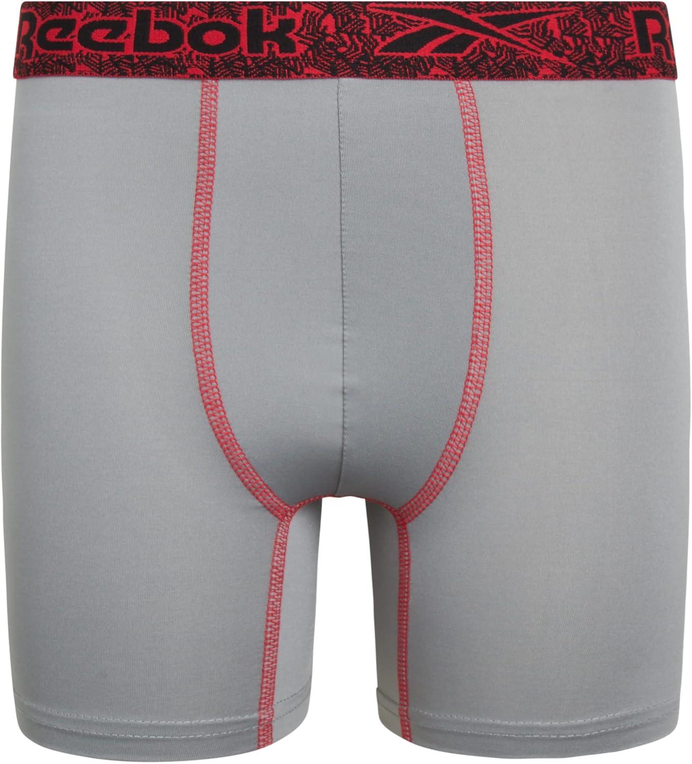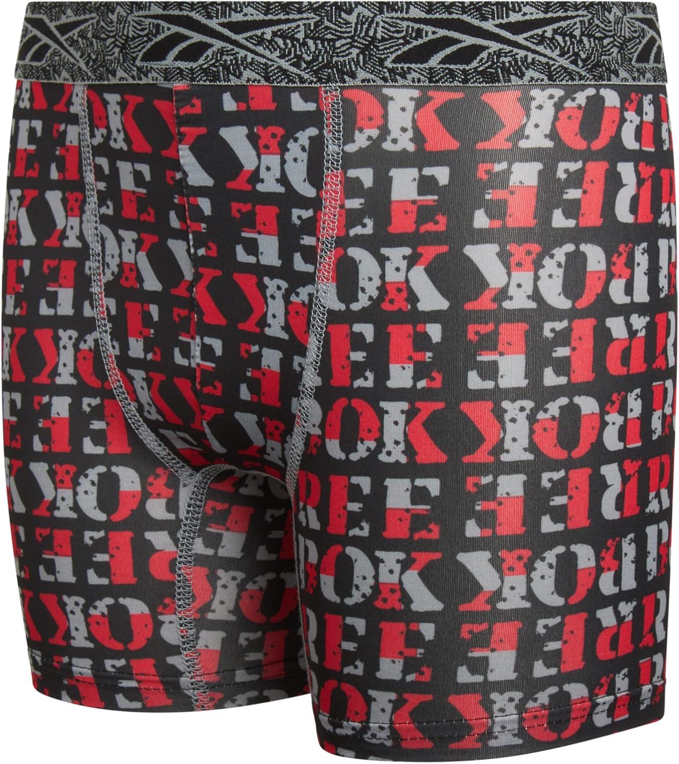 Reebok Boys Boxer Briefs – 3 Pack Soft Comfort Performance Stretch Boys Underwear – Breathable Boxers for Boy (6-18)(Black/Red/Grey/Black Print)