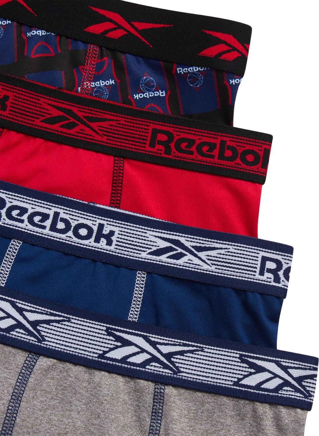 Reebok Boys Boxer Briefs - 4 Pack Soft Comfort Performance Stretch Breathable 5” Inseam Boxer Briefs Boys Underwear (6-18)(Light Grey Melange/Blue Depths/Chinese Red/Print)