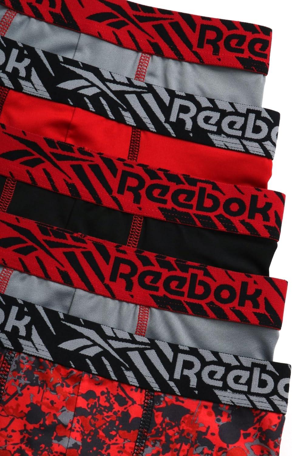 Reebok Boys Boxer Briefs - 5 Pack Breathable Performance Stretch Athletic Underwear Boxers for Boys with Contour Pouch (6-18)(Red Print/Grey/Red/Black/Grey)