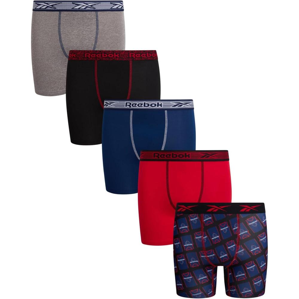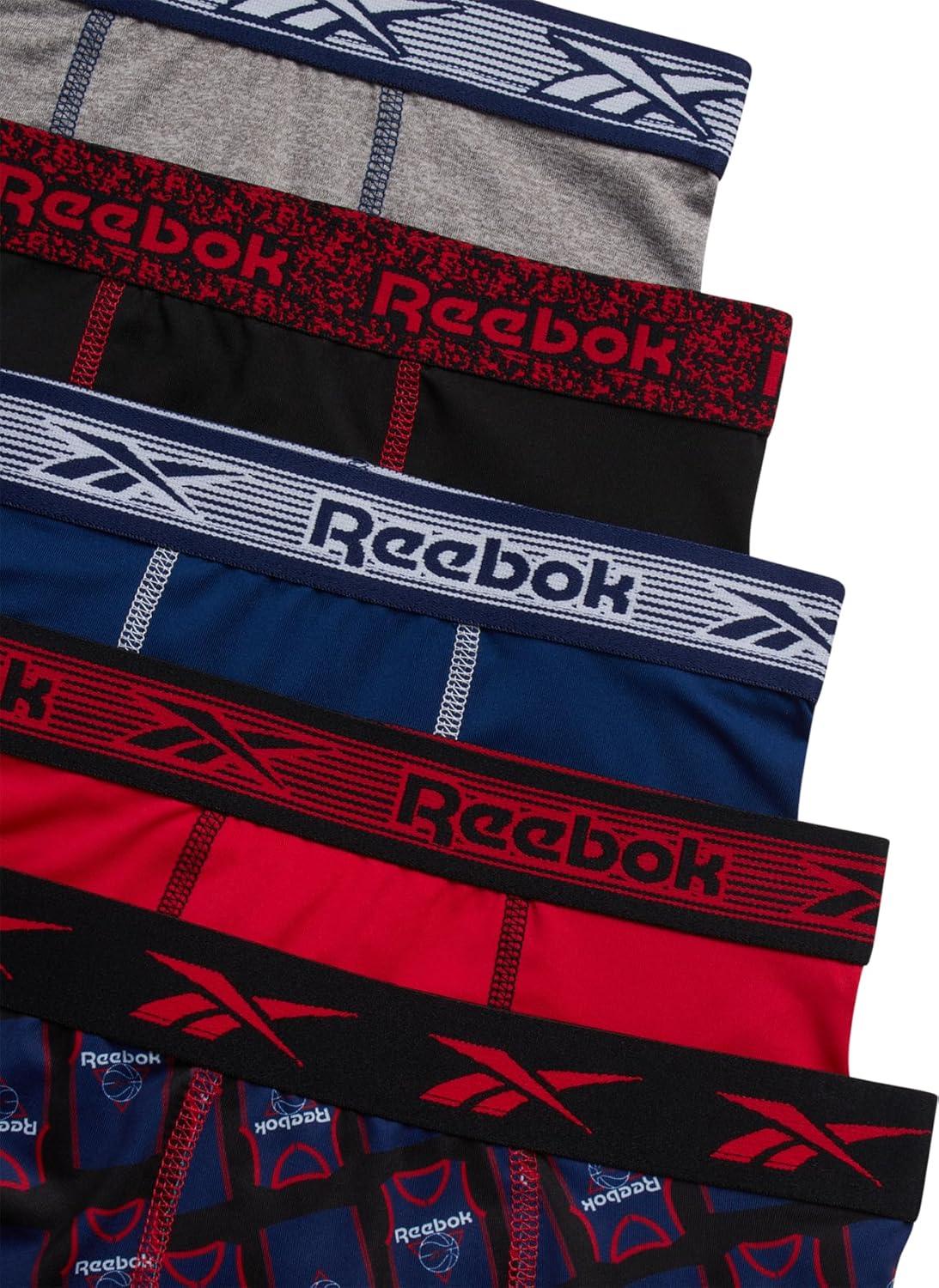 Reebok Boys Boxer Briefs - 5 Pack Performance Soft Stretch Breathable 5” Inseam Boxer Briefs Boys Underwear (6-18)(Light Grey Melange/Blue Depths/Chinese Red/Blue Depths Print/Black)