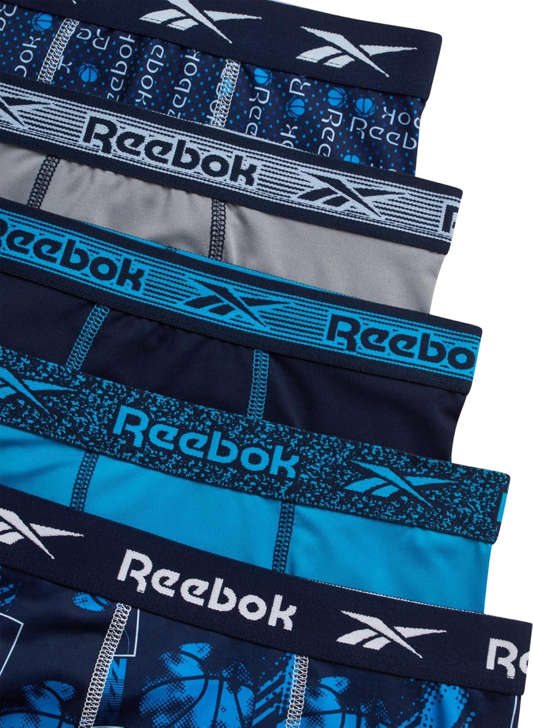 Reebok Boys Boxer Briefs - 5 Pack Performance Soft Stretch Breathable 5” Inseam Boxer Briefs Boys Underwear (6-18)(Maritime Blue/Stone Grey/Atomic Blue)