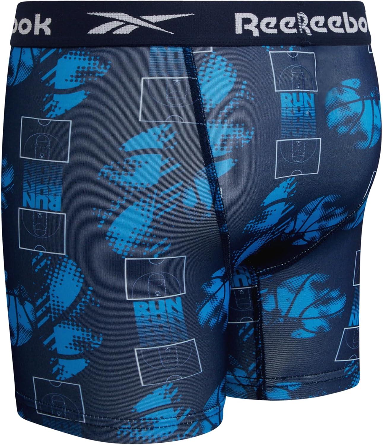 Reebok Boys Boxer Briefs – 5 Pack Performance Soft Stretch Breathable 5” Inseam Boxer Briefs Boys Underwear (6-18)(Maritime Blue/Stone Grey/Atomic Blue)