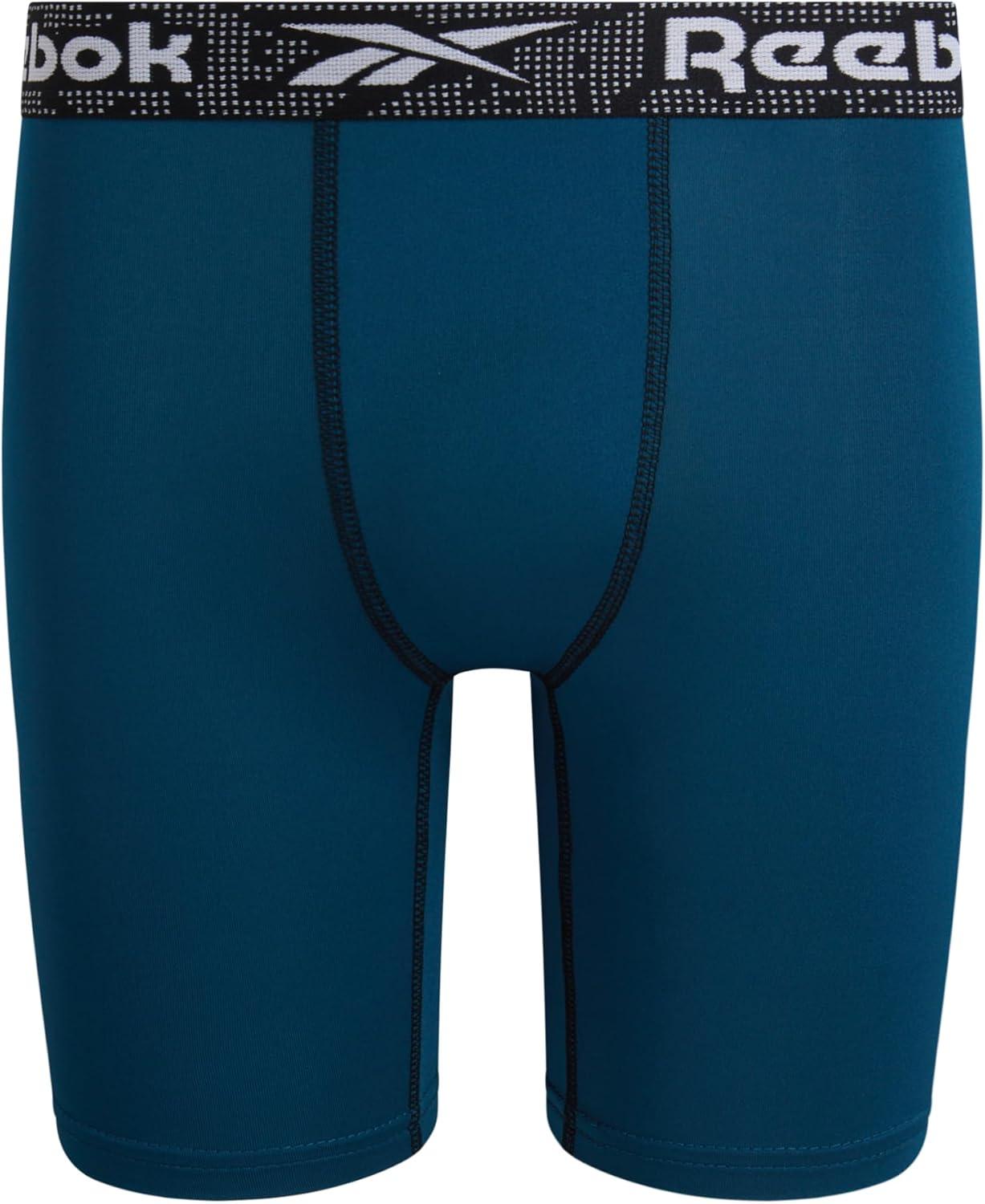 Reebok Boys Boxer Briefs – 6 Pack Performance Long Leg Boxer Briefs Boys Underwear with Support Pouch, 6” Inseam (6-18)(Sky Blue/Black/Legion Blue)