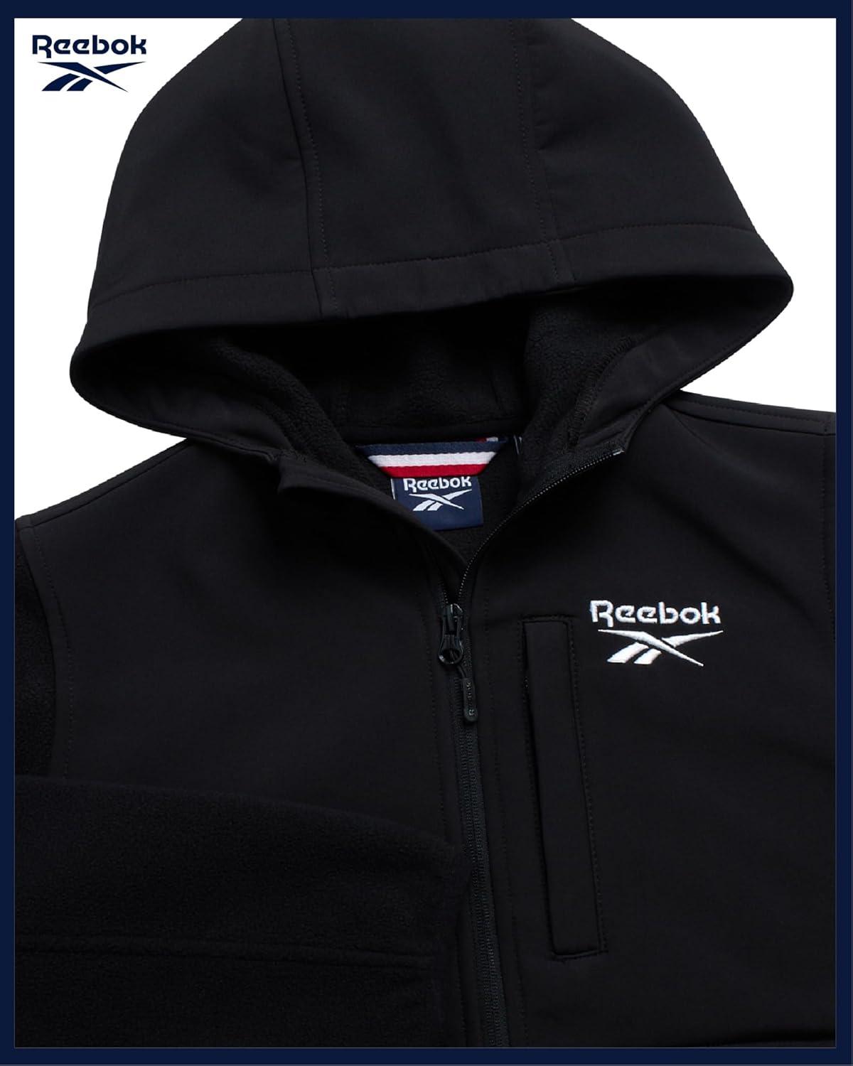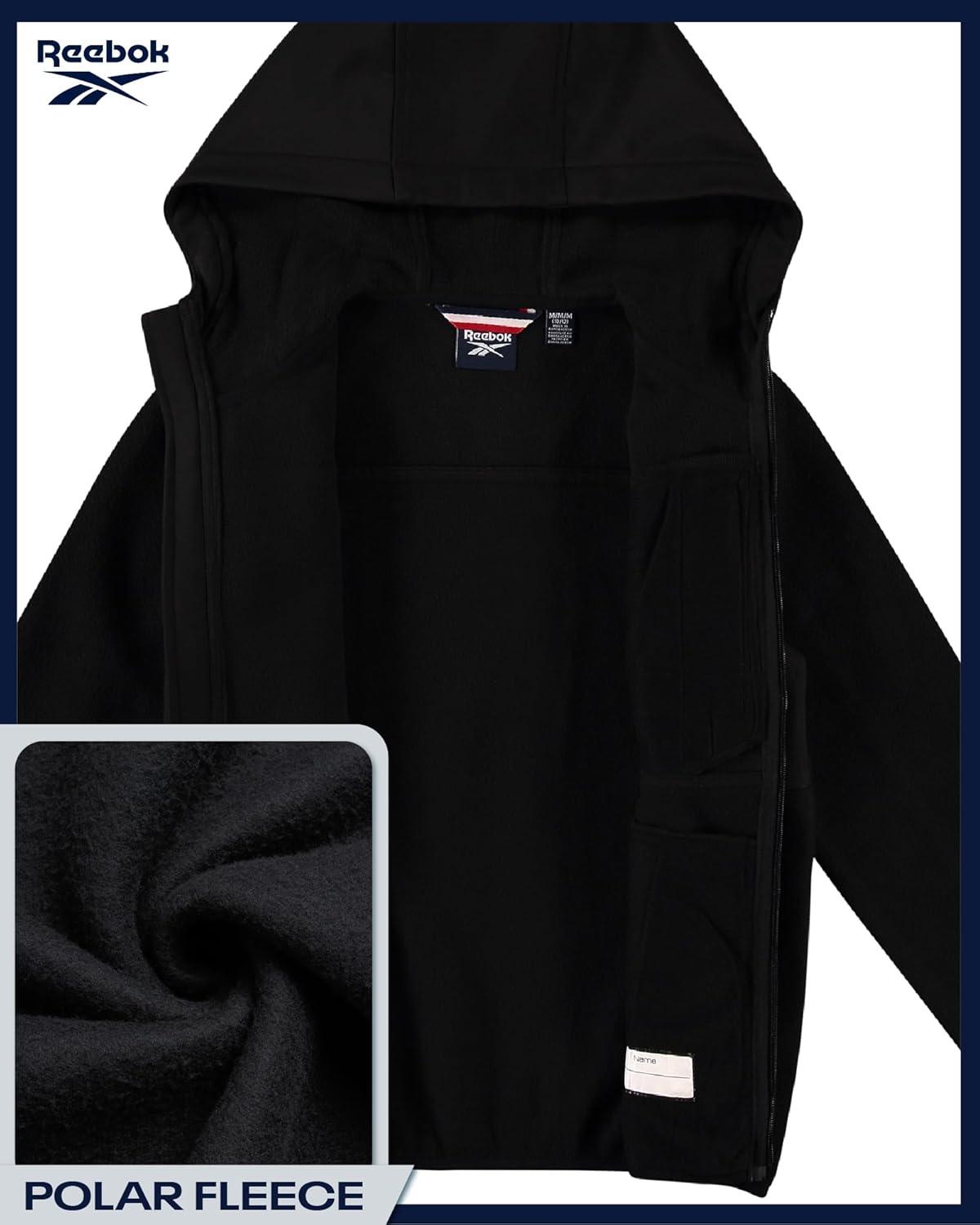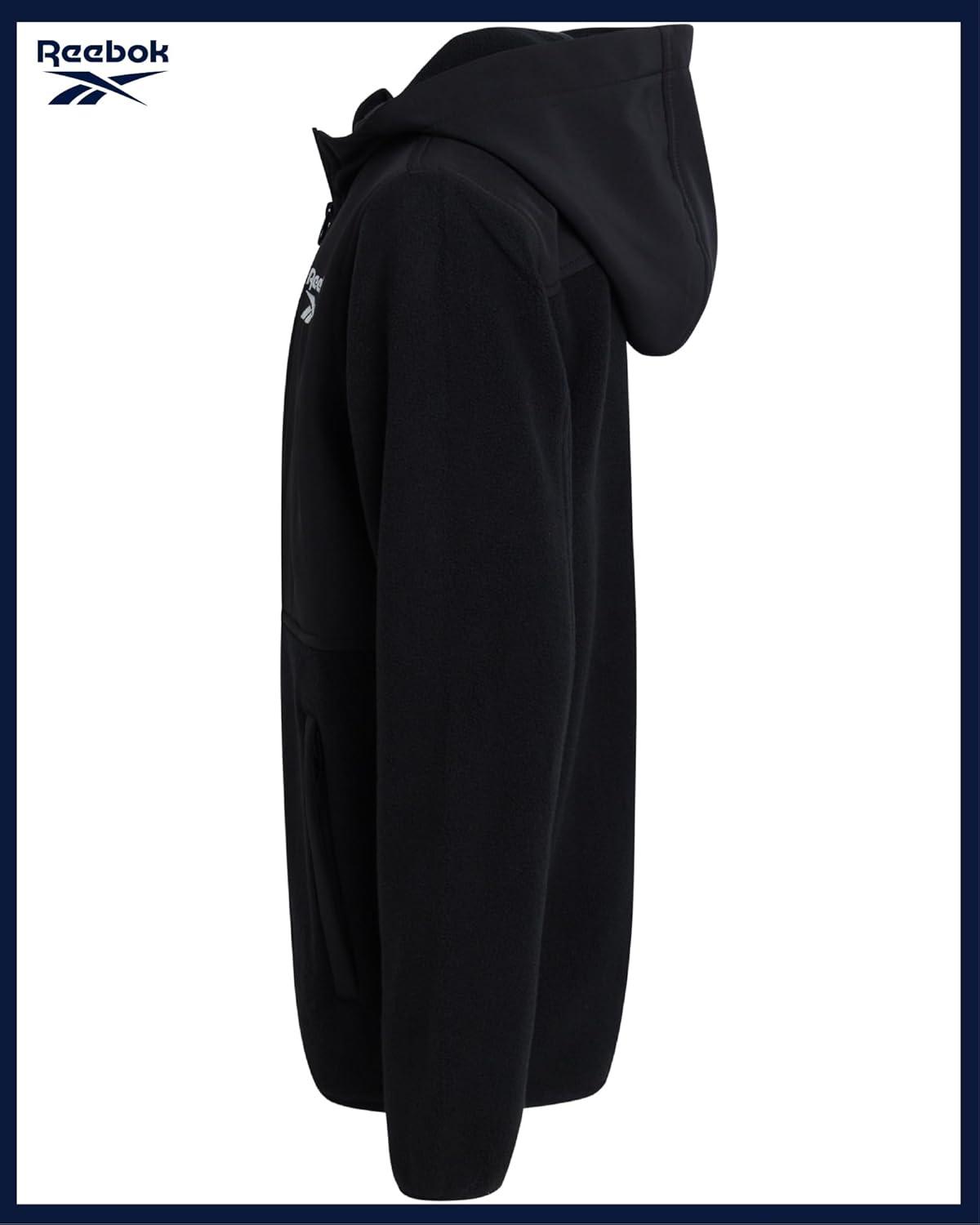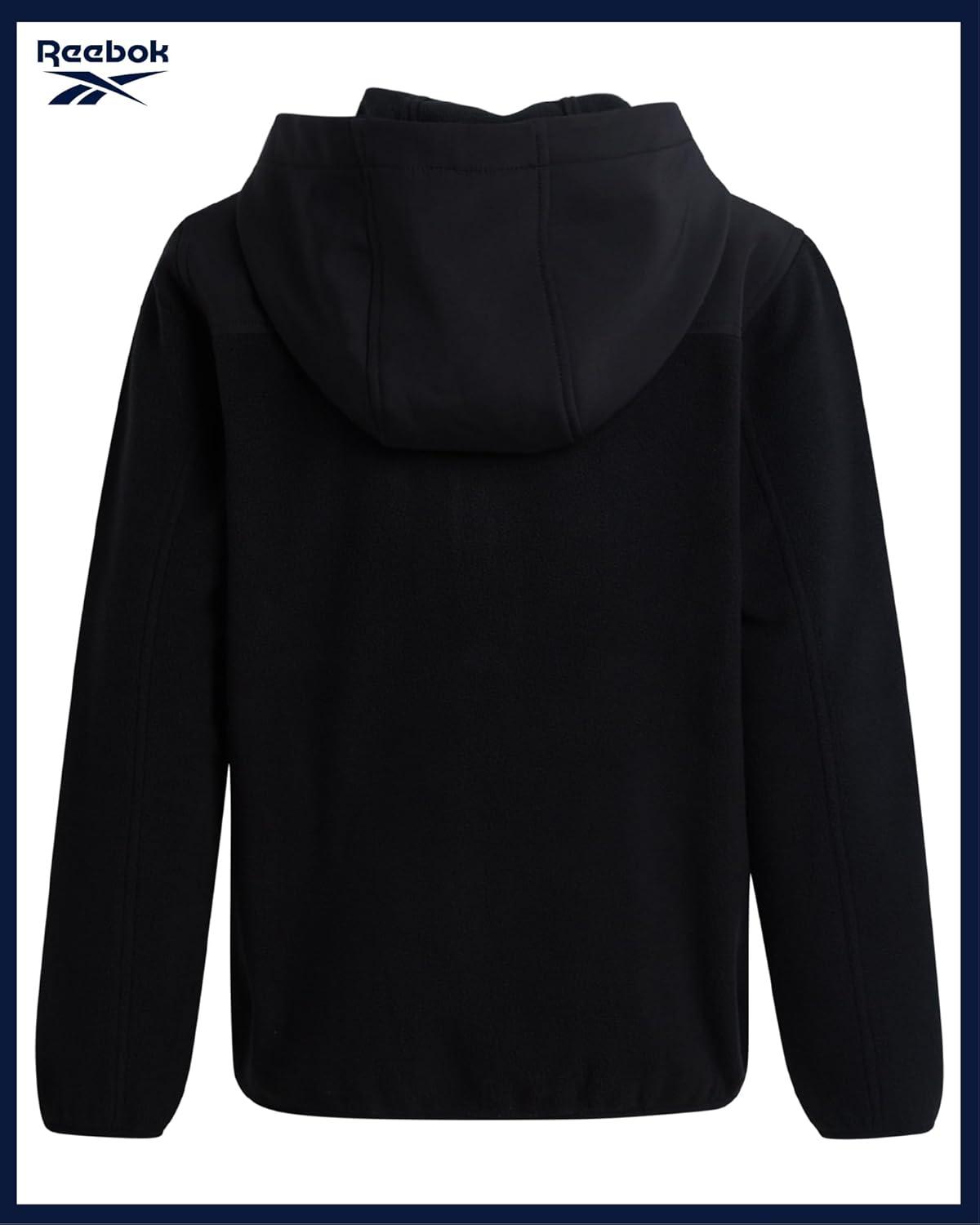 Reebok Boys Fleece Jacket – Weather Resistant Hooded Full Zip Polar Fleece Jacket for Boys – Lightweight Outerwear Jackets(Black Ink)