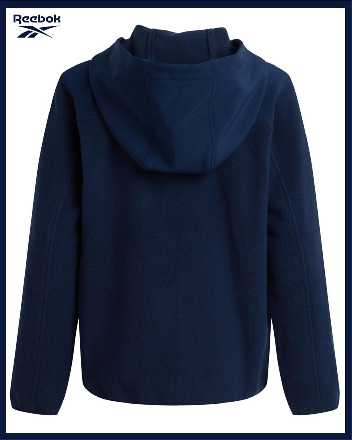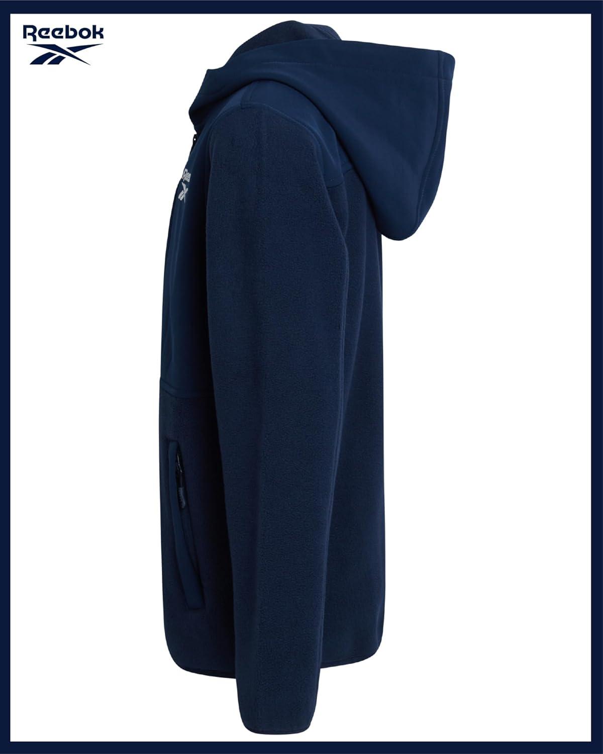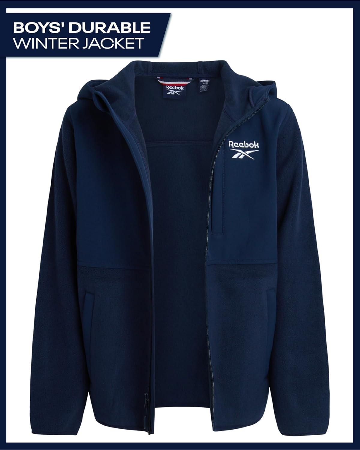Reebok Boys Fleece Jacket - Weather Resistant Hooded Full Zip Polar Fleece Jacket for Boys - Lightweight Outerwear Jackets(Vector Navy Blue)