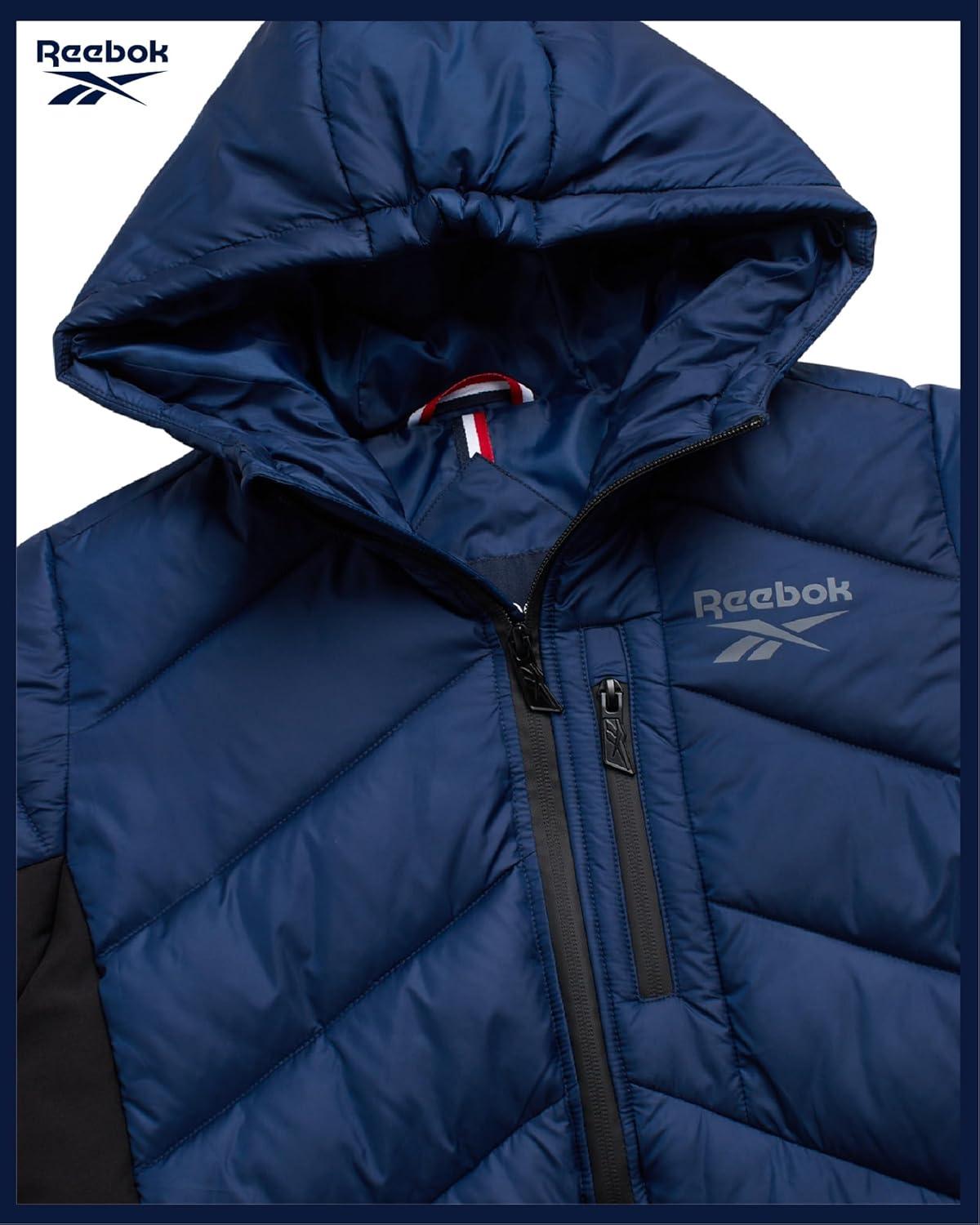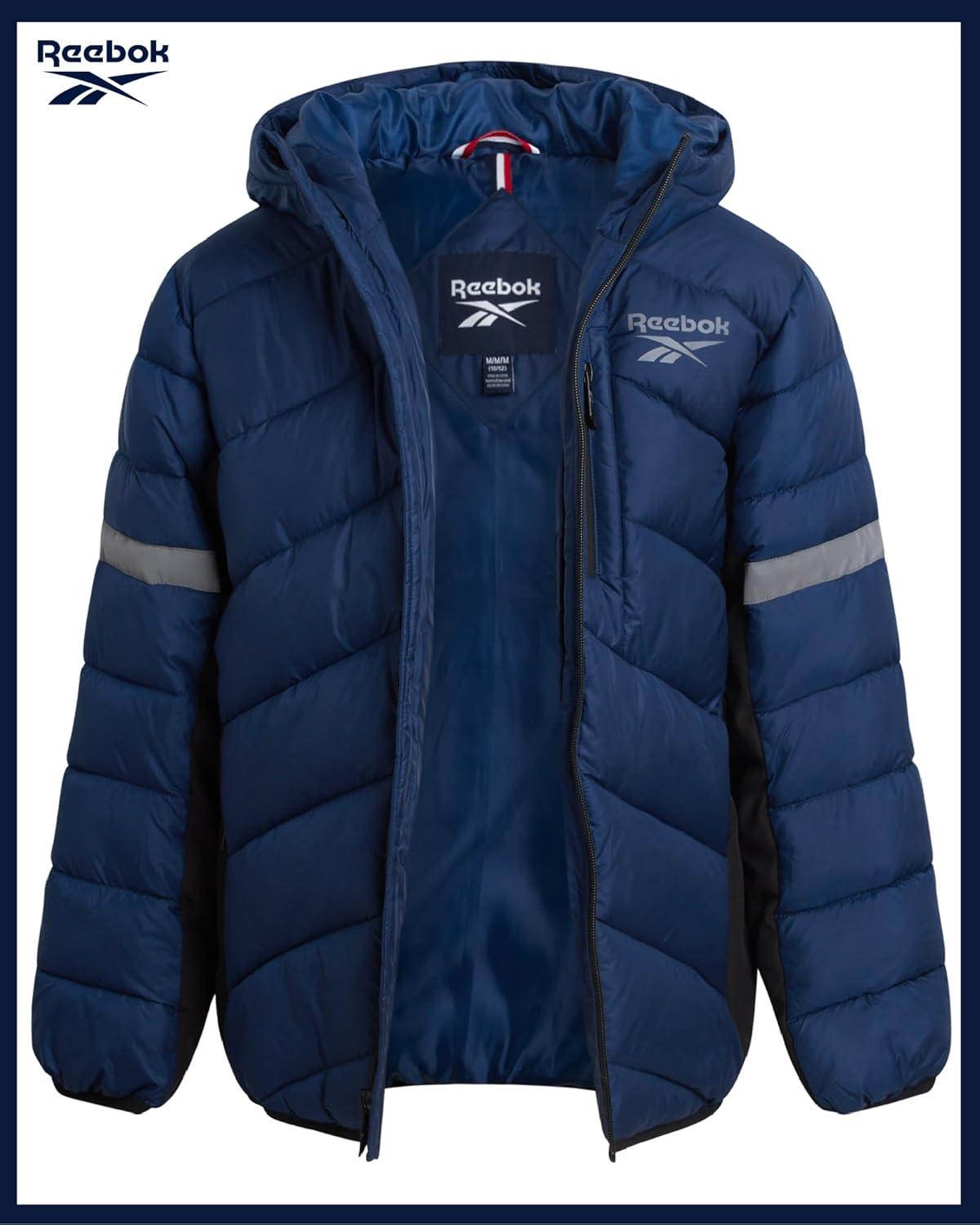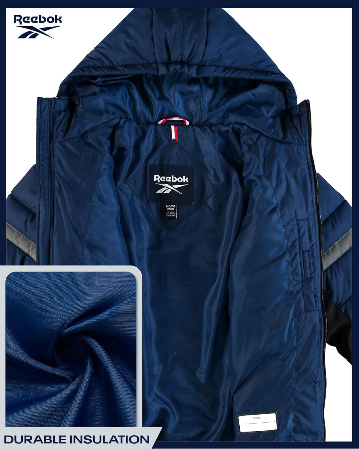Reebok Boys Puffer Jacket – Heavyweight Quilted Wind & Water Resistant Boys Winter Coat – Insulated Bubble Kids Winter Jacket(Batik Blue Navy)