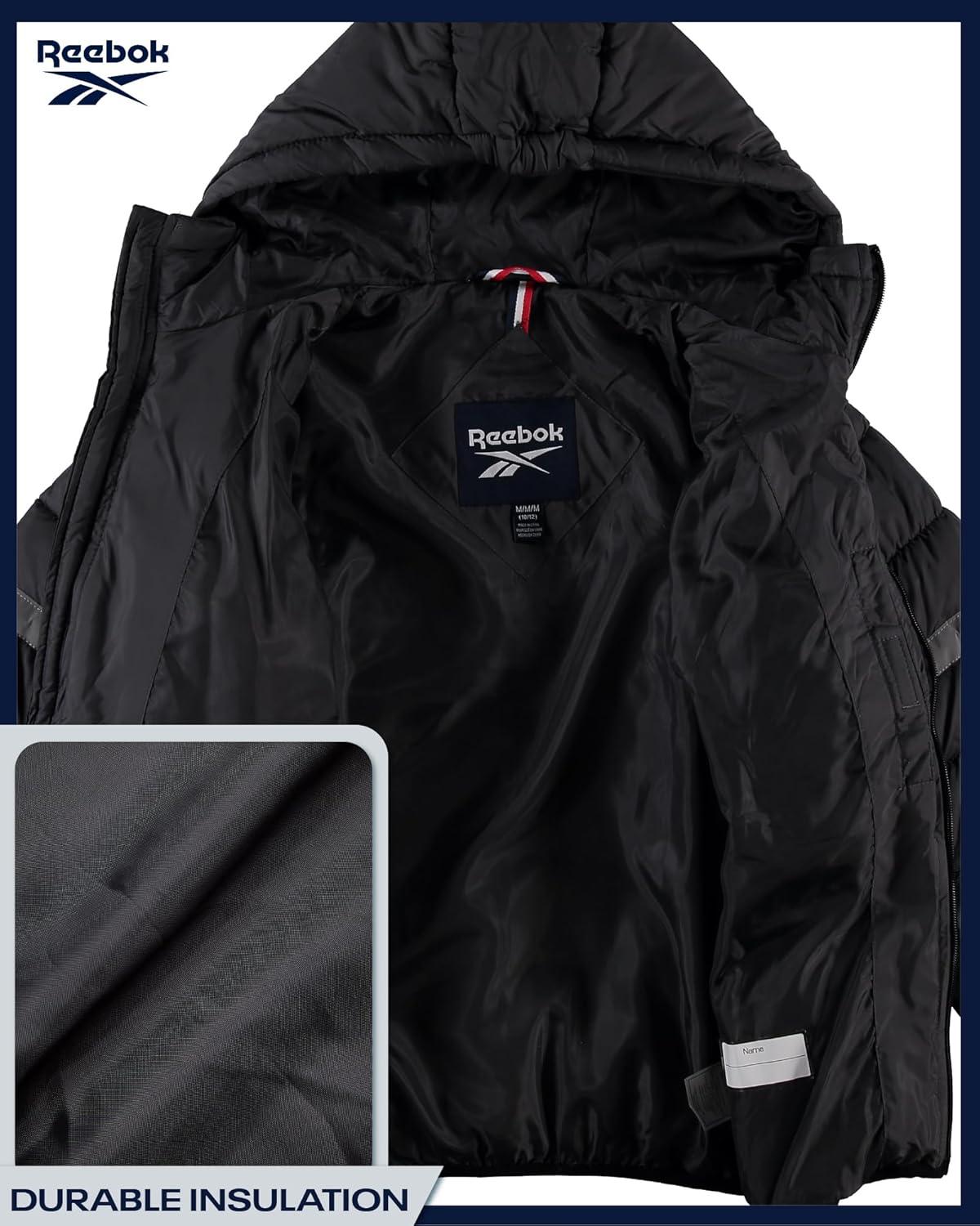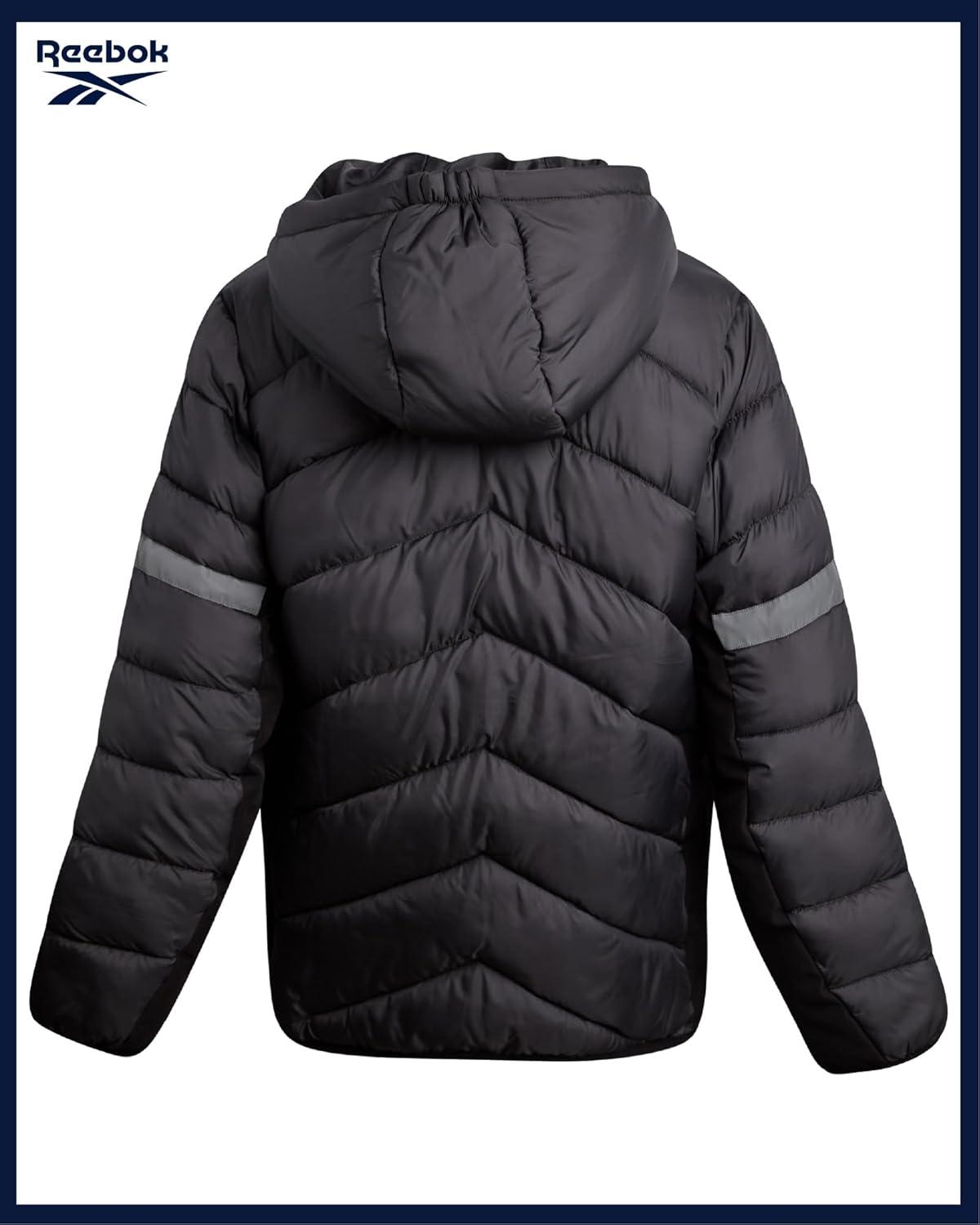 Reebok Boys Puffer Jacket – Heavyweight Quilted Wind & Water Resistant Boys Winter Coat – Insulated Bubble Kids Winter Jacket(Black Ink)