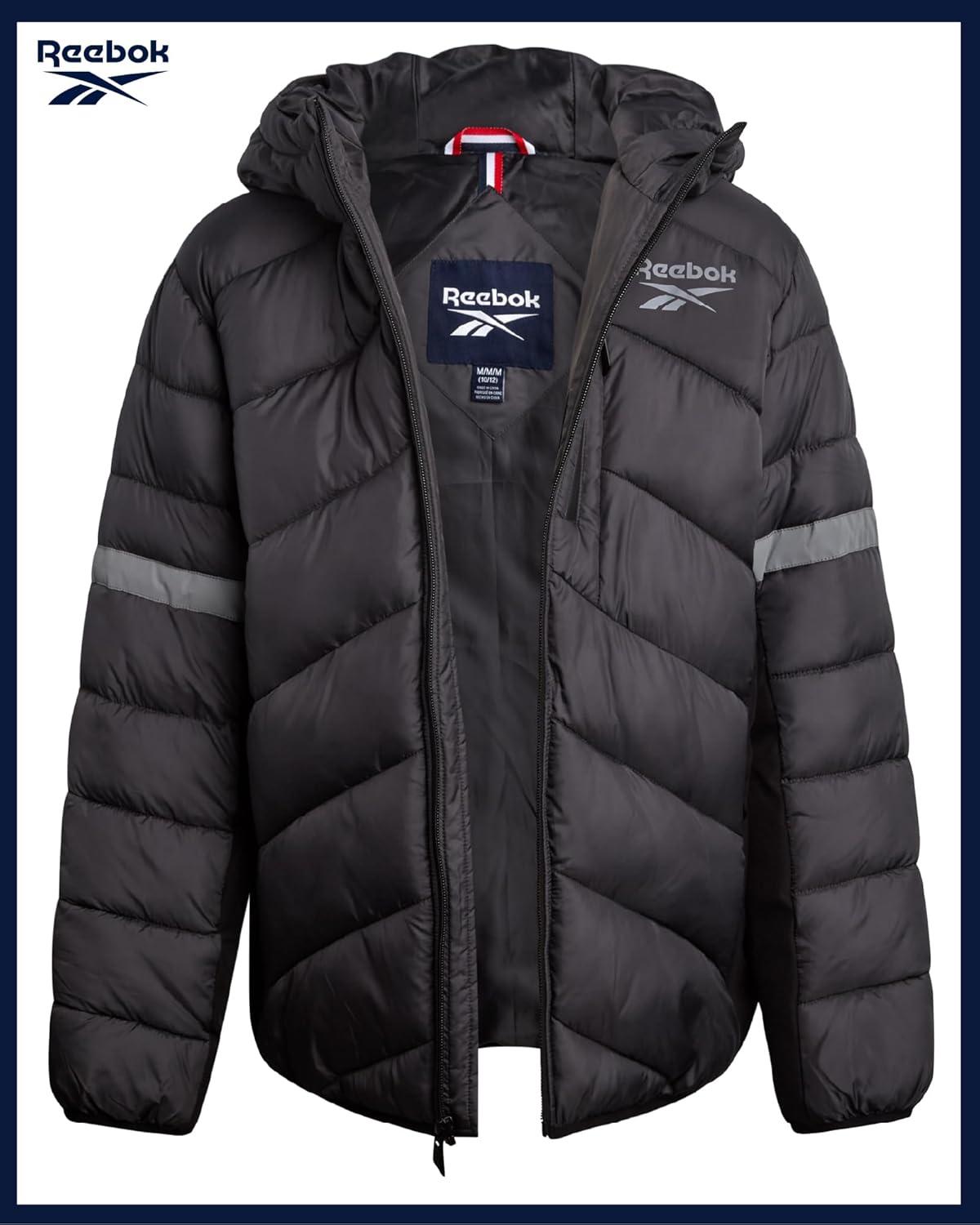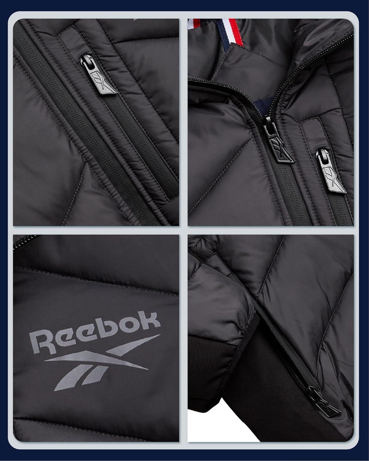 Reebok Boys Puffer Jacket – Heavyweight Quilted Wind & Water Resistant Boys Winter Coat – Insulated Bubble Kids Winter Jacket(Charcoal Slate)