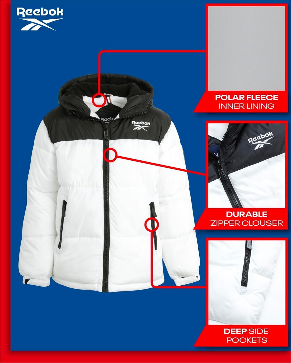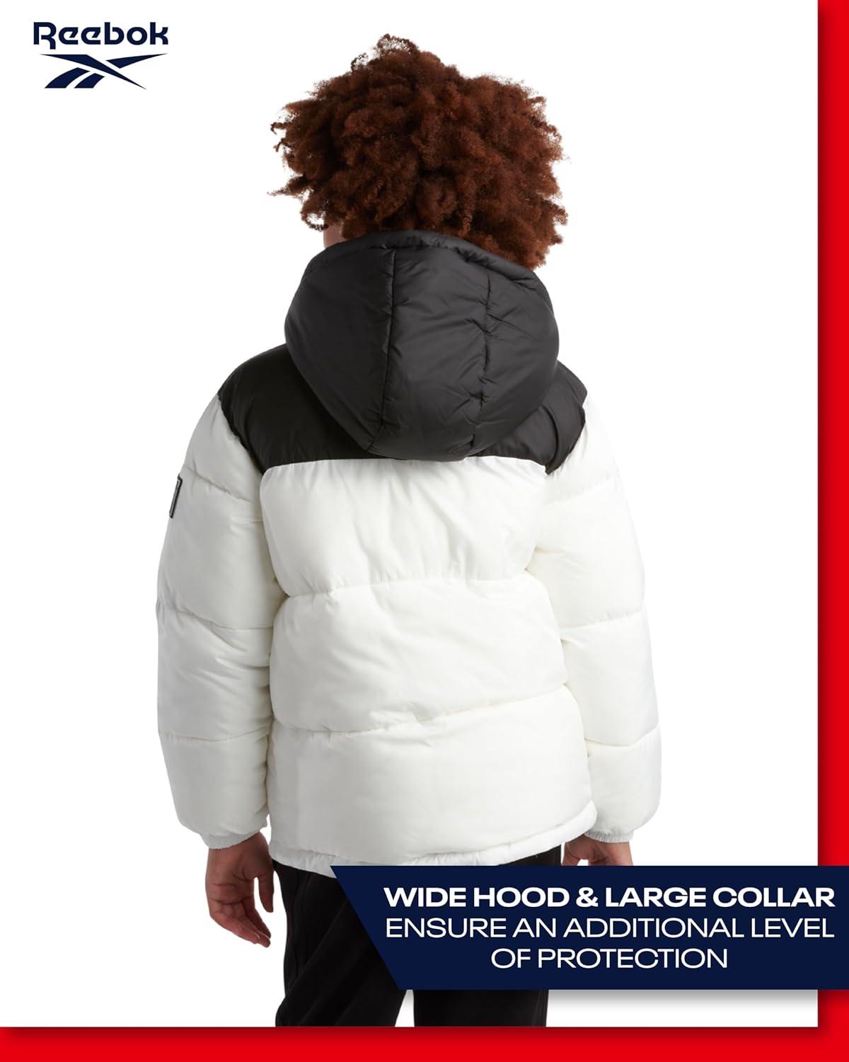 Reebok Boys Puffer Jacket – Heavyweight Water & Wind Resistant Quilted Boys Winter Coat – Fleece Insulated Kids Winter Jacket(White)
