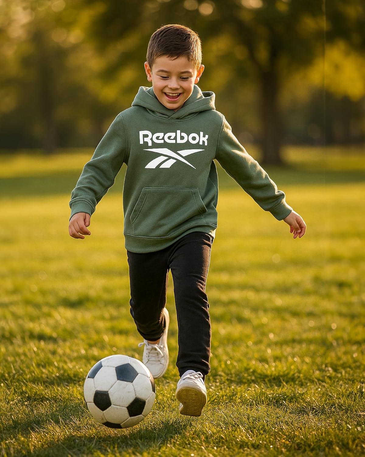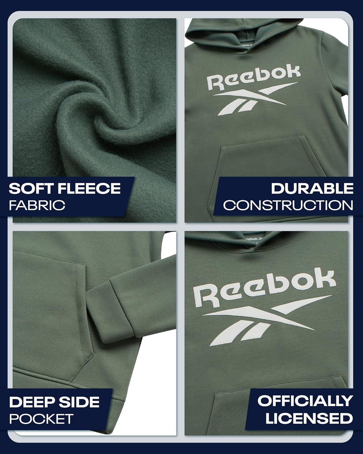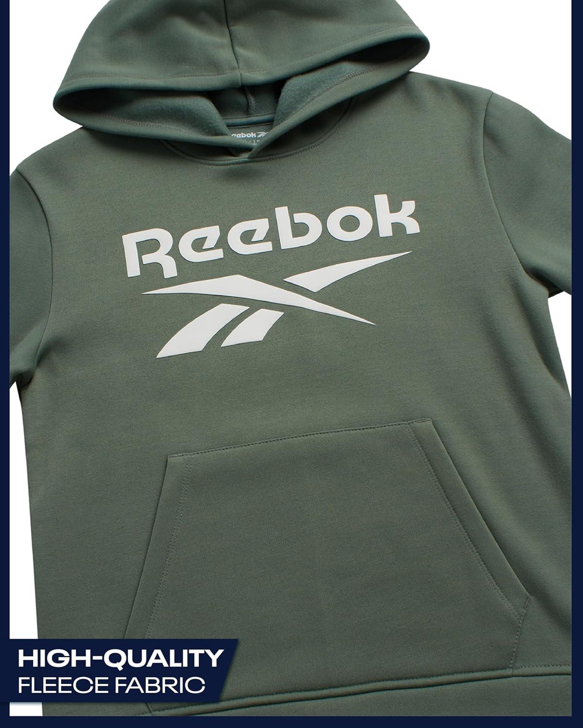 Upgrade your kid’s everyday gear with the Reebok Boys Hoodie—a must-have performance fleece pullover hoodie for kids who move. This soft hooded sweatshirt is crafted with cozy fleece that delivers serious warmth and comfort, making it the perfect go-to layer for school, play, or weekends at home. Whether you're shopping for a black hoodie, a graphic staple, or boys' activewear that keeps up with his routine, this pullover delivers on every level. This boys hoodie stands out thanks to its bold logo and durable construction, offering dependable wear for all-day action. Whether he’s heading to gym class, braving cold recess, or layering over his favorite boys long sleeve shirts, the fleece hoodie keeps him feeling snug without sacrificing breathability. Parents searching for boys clothes size 10-12 youth, boys hoodies size 8-10, or even a solid black athletic top for chilly mornings will find this a wardrobe winner. Designed with everyday performance in mind, this sweatshirt includes reinforced stitching that resists wear and tear. The roomy hood provides extra coverage, while the fleece lining offers comfort that lasts from morning bus stops to after-school hangouts. It’s the ideal essential hoodie for boys who like a mix of function and athletic-inspired fashion. Perfect for pairing with joggers, jeans, or sweats, this boys hoodie complements everything from boys' fashion to gym hoodie outfits. It’s also a reliable layering piece for kids who need a comfortable sweat shirt or black sweatshirt that won’t quit. Whether you're replacing his old camo hoodie, looking for a trendy graphic hoodie, or shopping boys clothes that blend style and performance, Reebok delivers the ultimate cold-weather pullover.