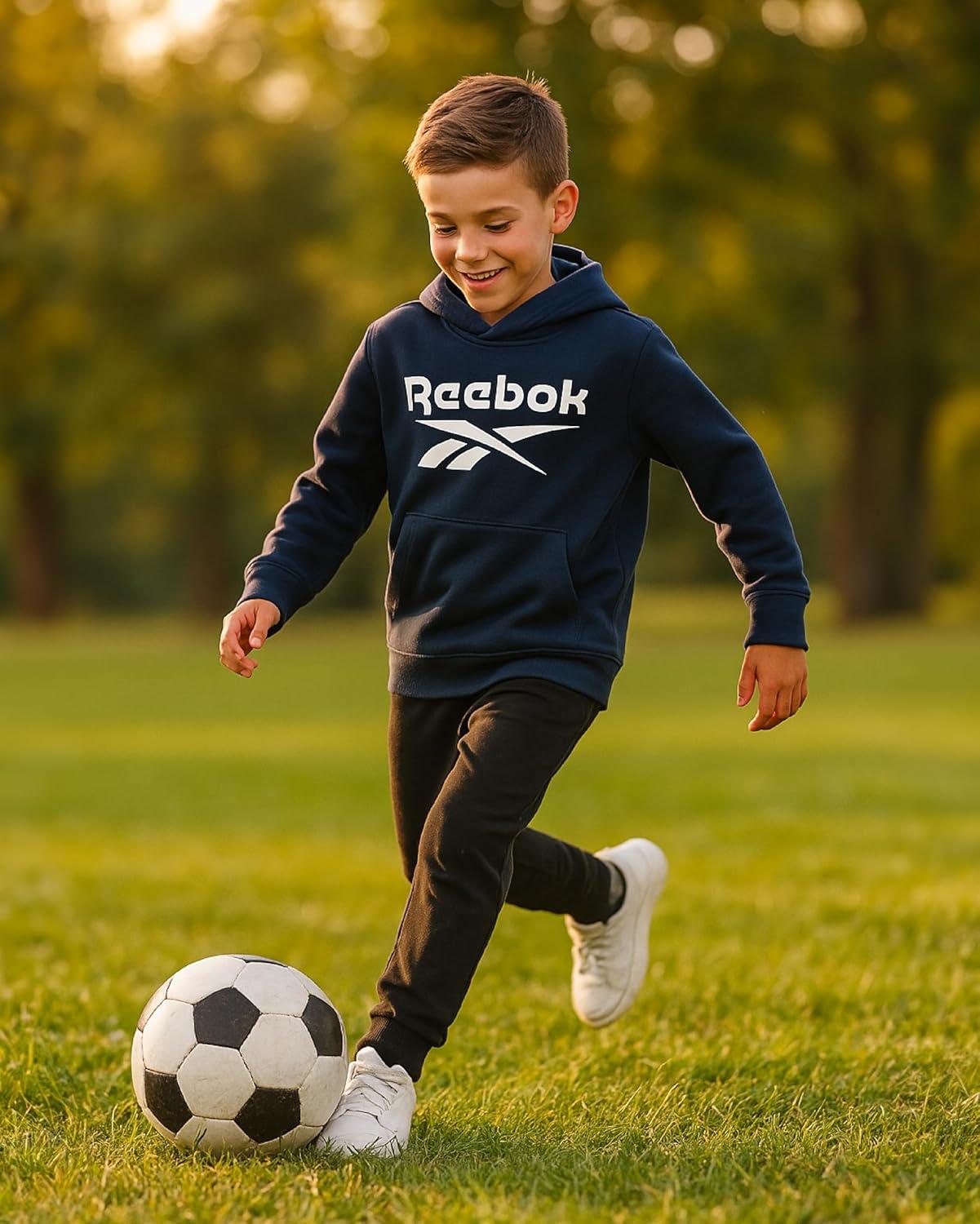 Upgrade your kid’s everyday gear with the Reebok Boys Hoodie—a must-have performance fleece pullover hoodie for kids who move. This soft hooded sweatshirt is crafted with cozy fleece that delivers serious warmth and comfort, making it the perfect go-to layer for school, play, or weekends at home. Whether you're shopping for a black hoodie, a graphic staple, or boys' activewear that keeps up with his routine, this pullover delivers on every level. This boys hoodie stands out thanks to its bold logo and durable construction, offering dependable wear for all-day action. Whether he’s heading to gym class, braving cold recess, or layering over his favorite boys long sleeve shirts, the fleece hoodie keeps him feeling snug without sacrificing breathability. Parents searching for boys clothes size 10-12 youth, boys hoodies size 8-10, or even a solid black athletic top for chilly mornings will find this a wardrobe winner. Designed with everyday performance in mind, this sweatshirt includes reinforced stitching that resists wear and tear. The roomy hood provides extra coverage, while the fleece lining offers comfort that lasts from morning bus stops to after-school hangouts. It’s the ideal essential hoodie for boys who like a mix of function and athletic-inspired fashion. Perfect for pairing with joggers, jeans, or sweats, this boys hoodie complements everything from boys' fashion to gym hoodie outfits. It’s also a reliable layering piece for kids who need a comfortable sweat shirt or black sweatshirt that won’t quit. Whether you're replacing his old camo hoodie, looking for a trendy graphic hoodie, or shopping boys clothes that blend style and performance, Reebok delivers the ultimate cold-weather pullover.