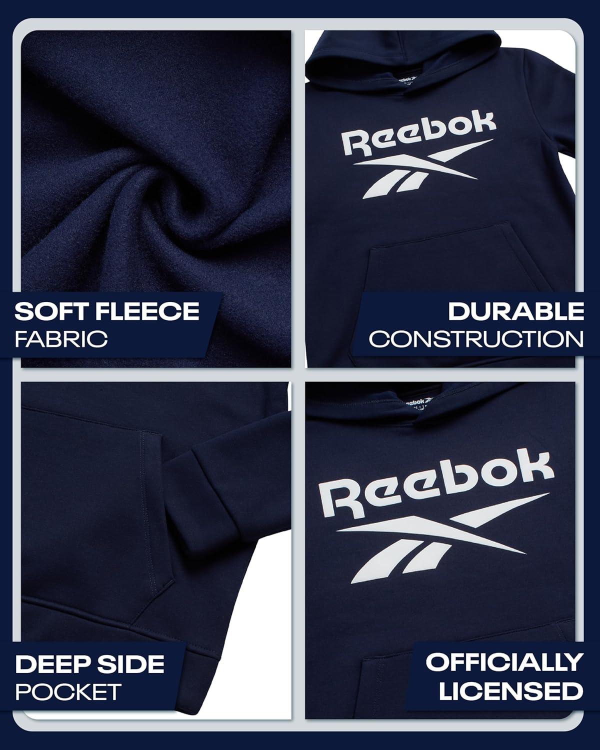 Reebok Boys Sweatshirts – Performance Fleece Pullover Hoodies for Boys – Cozy Graphic Hoodies for Gym and Daily Wear(Vector Navy)