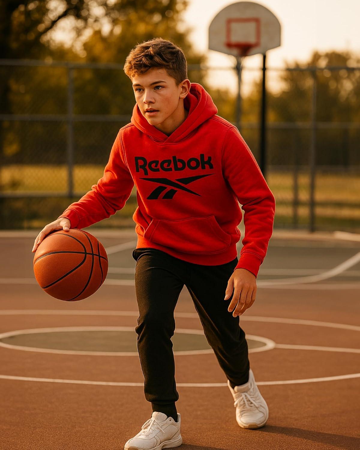 Upgrade your kid’s everyday gear with the Reebok Boys Hoodie—a must-have performance fleece pullover hoodie for kids who move. This soft hooded sweatshirt is crafted with cozy fleece that delivers serious warmth and comfort, making it the perfect go-to layer for school, play, or weekends at home. Whether you're shopping for a black hoodie, a graphic staple, or boys' activewear that keeps up with his routine, this pullover delivers on every level. This boys hoodie stands out thanks to its bold logo and durable construction, offering dependable wear for all-day action. Whether he’s heading to gym class, braving cold recess, or layering over his favorite boys long sleeve shirts, the fleece hoodie keeps him feeling snug without sacrificing breathability. Parents searching for boys clothes size 10-12 youth, boys hoodies size 8-10, or even a solid black athletic top for chilly mornings will find this a wardrobe winner. Designed with everyday performance in mind, this sweatshirt includes reinforced stitching that resists wear and tear. The roomy hood provides extra coverage, while the fleece lining offers comfort that lasts from morning bus stops to after-school hangouts. It’s the ideal essential hoodie for boys who like a mix of function and athletic-inspired fashion. Perfect for pairing with joggers, jeans, or sweats, this boys hoodie complements everything from boys' fashion to gym hoodie outfits. It’s also a reliable layering piece for kids who need a comfortable sweat shirt or black sweatshirt that won’t quit. Whether you're replacing his old camo hoodie, looking for a trendy graphic hoodie, or shopping boys clothes that blend style and performance, Reebok delivers the ultimate cold-weather pullover.