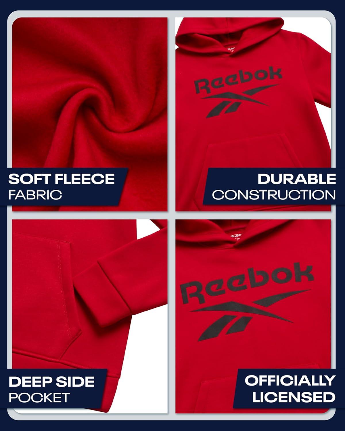Reebok Boys Sweatshirts – Performance Fleece Pullover Hoodies for Boys – Cozy Graphic Hoodies for Gym and Daily Wear(Vector Red)