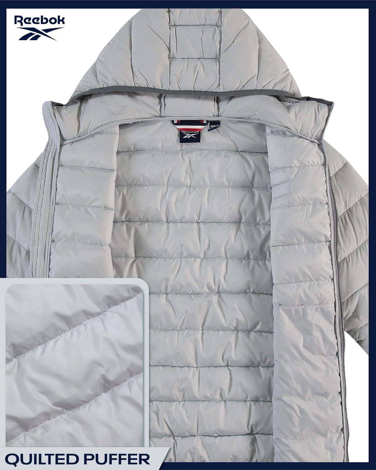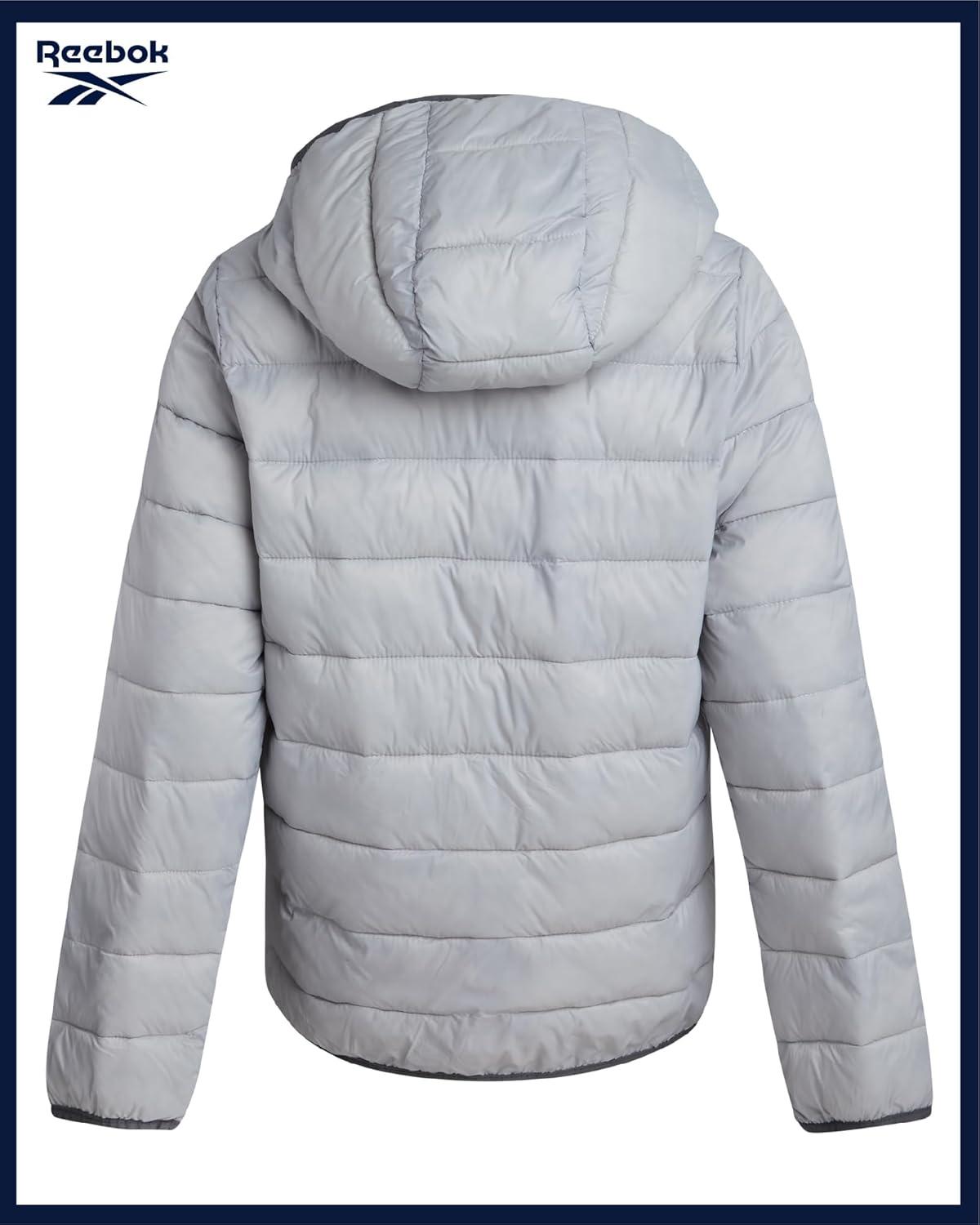 Reebok Boys Winter Coat - Lightweight Insulated Puffer Jacket - Wind & Water Resistant Quilted Hooded Winter Jacket for Boys(Ice Grey)