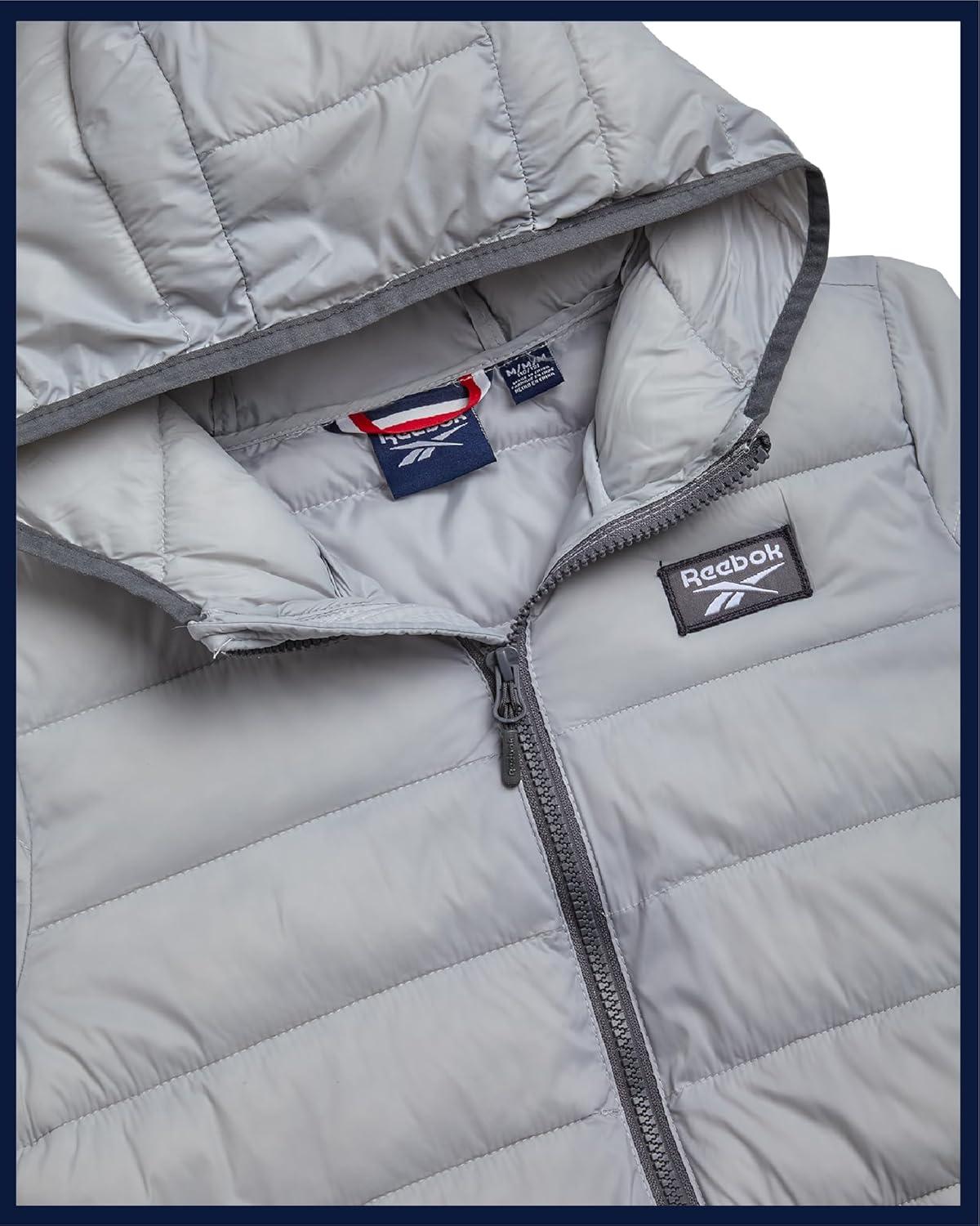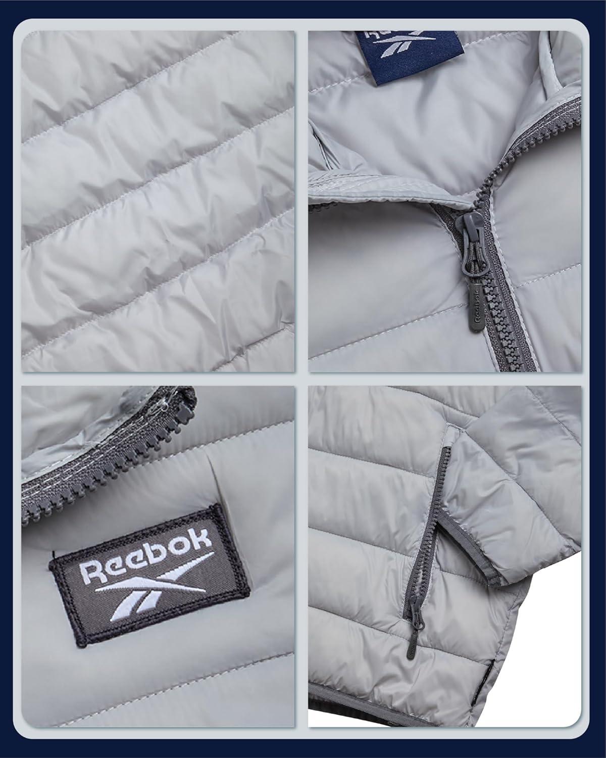 Reebok Boys Winter Coat – Lightweight Insulated Puffer Jacket – Wind & Water Resistant Quilted Hooded Winter Jacket for Boys(Ice Grey)