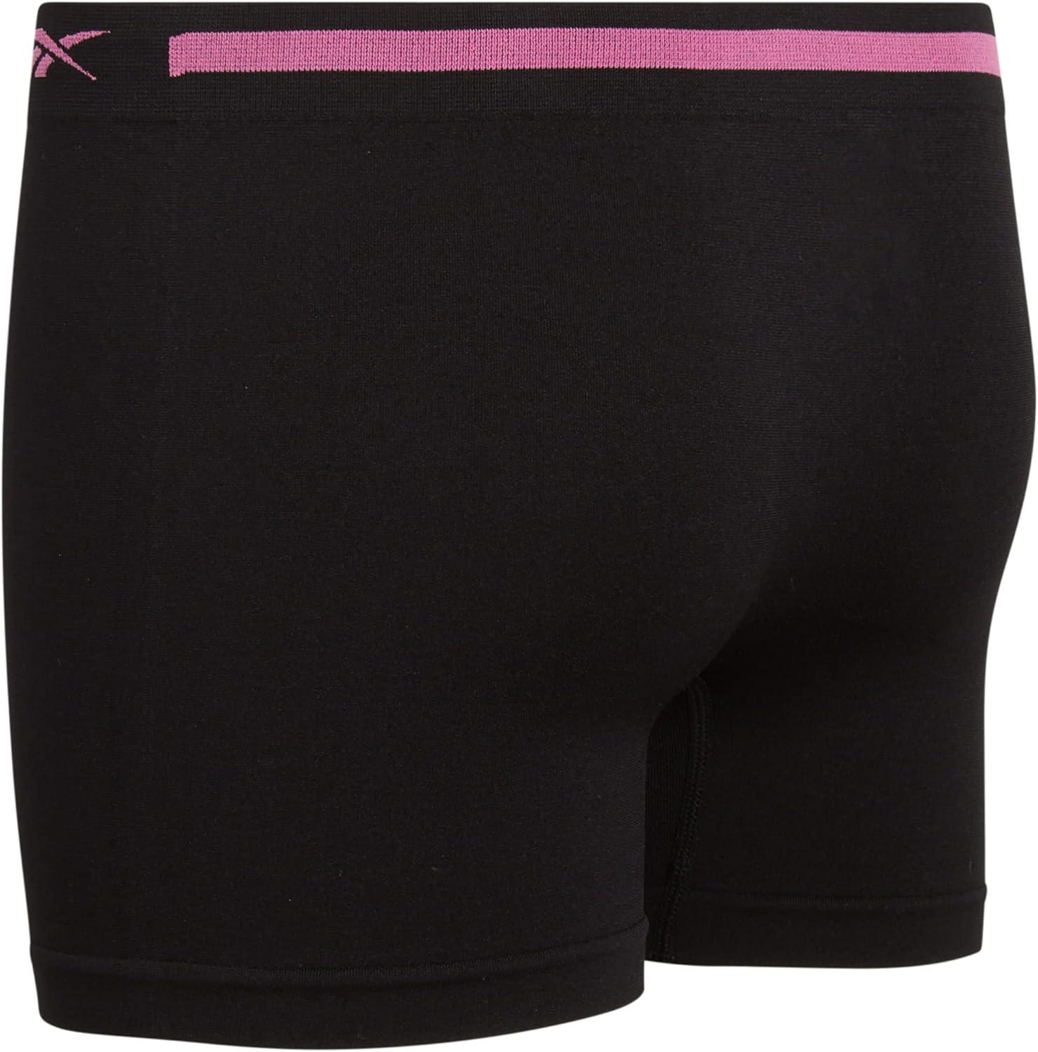 Designed for movement and everyday wear, these Reebok seamless boy short panties provide comfort, flexibility, and reliable coverage. Whether she's perfecting her cartwheels, running at recess, or relaxing at home, these seamless shorties deliver a soft, stretchy fit that keeps up with her active lifestyle. The smooth, tag-free waistband prevents irritation, while the seamless construction ensures a second-skin feel for all-day wear. With a full-coverage design, these biker shorts-style underwear sit securely on the waist and extend slightly down the thighs to help prevent chafing. The stay-in-place fit reduces the need for adjustments, allowing her to move freely and confidently. Whether worn under skirts, dresses, school uniforms, or athletic outfits, these stretchy boy short panties provide a smooth, no-show look under clothing. This multipack of girls' underwear offers a mix of designs, making it easy to stock up on comfortable essentials. The soft, flexible material adapts to movement, making them a go-to choice for sports, dance, and everyday activities. With a blend of style and function, these seamless shorties are designed to keep up with her active routine. Caring for them is simple-just toss them in the washing machine with similar colors and tumble dry low. Made for convenience and durability, these biker shorts-style panties are built to last through every adventure, practice, and playdate.