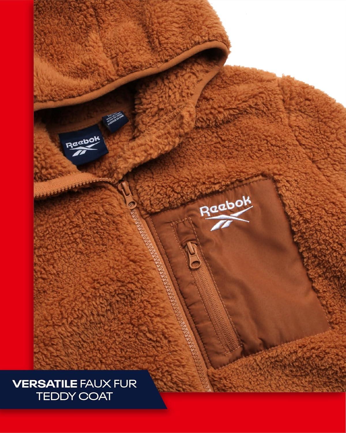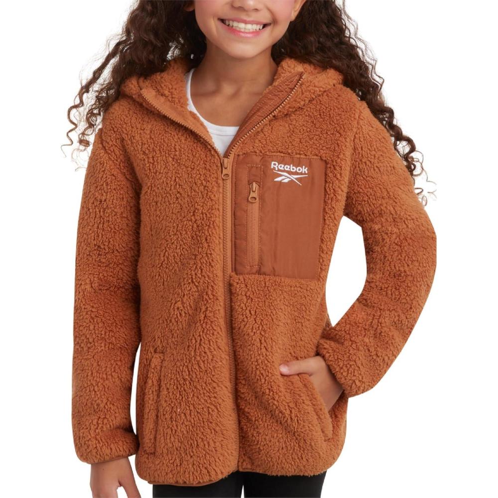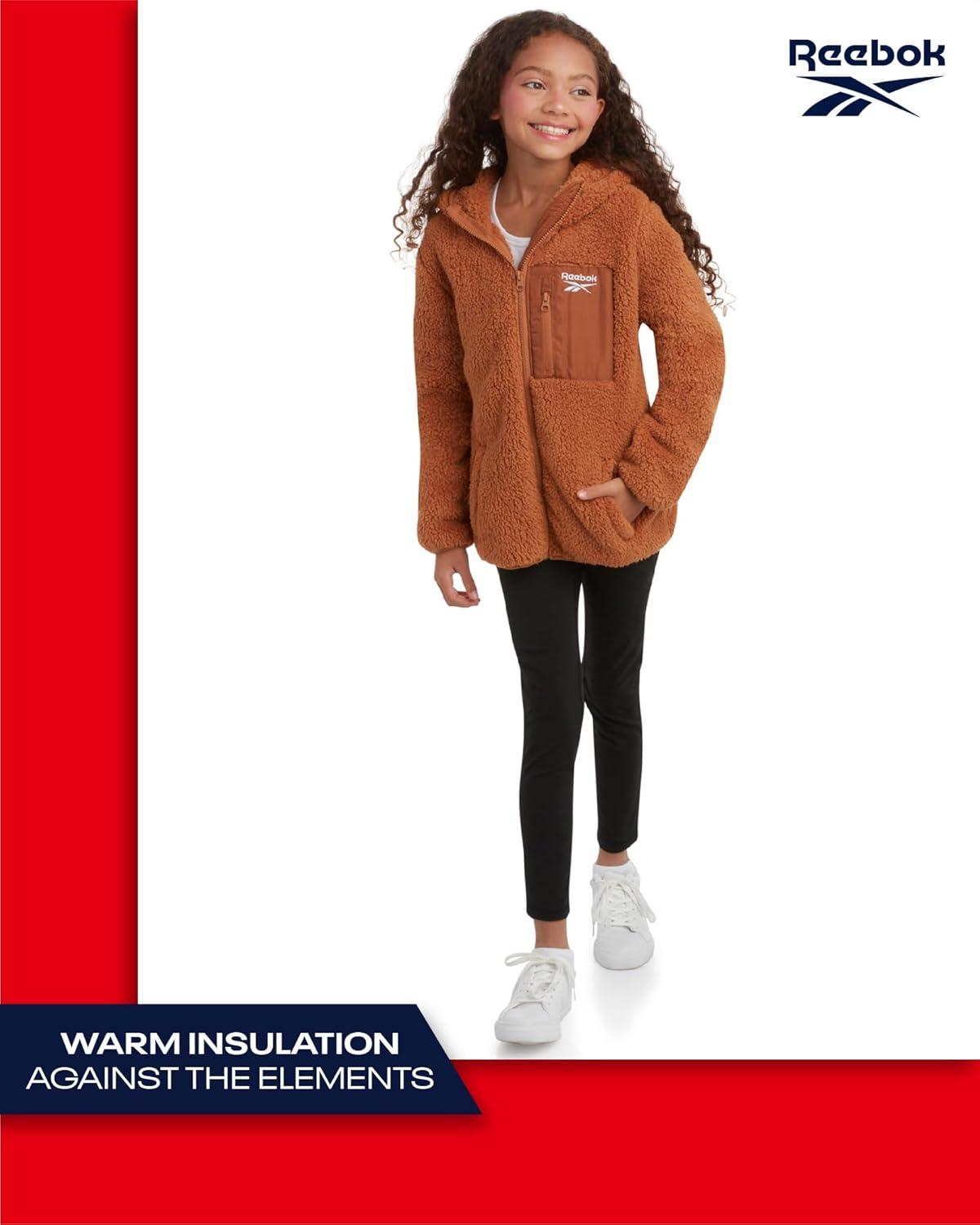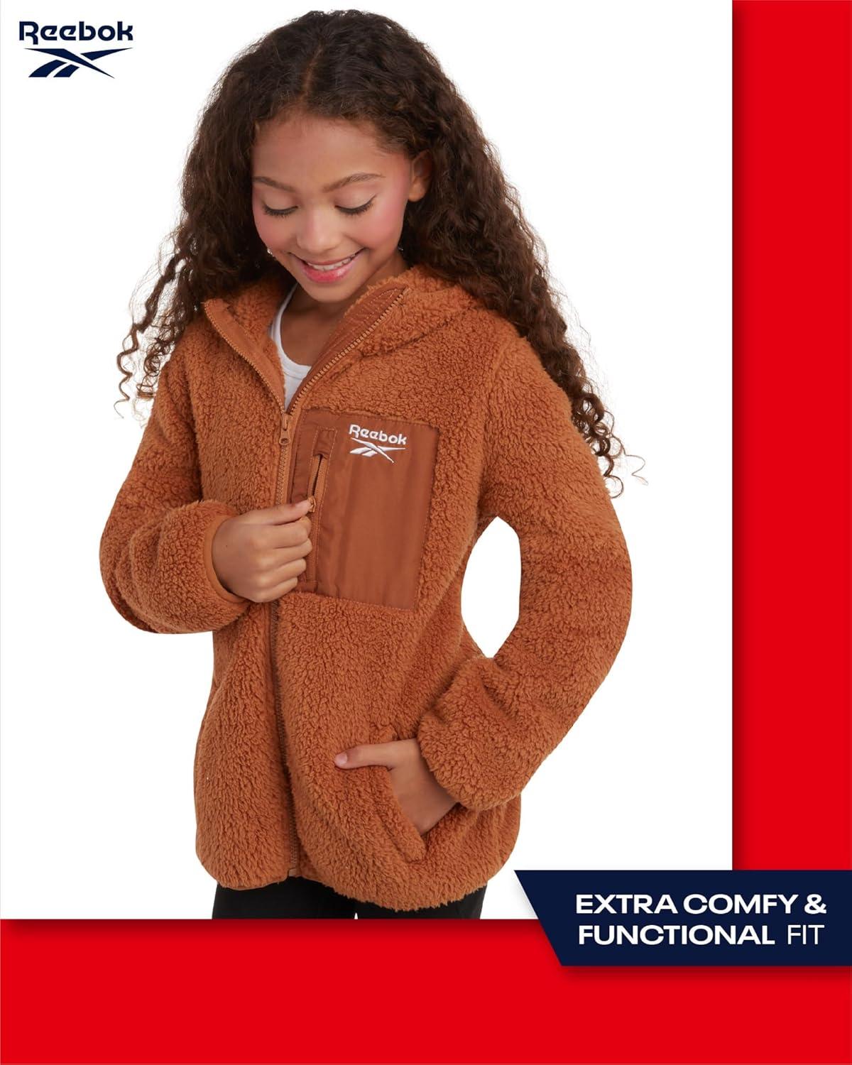 Reebok Girls' Fleece Sweatshirt Jacket – Full Zip Sherpa Fur Lined Hooded Jacket – Lightweight Teddy Coat for Girls is a great choice for every fashionable little girl when the temperature drops. Keep her comfortable on chilly days with an extra warm and stylish fleece coat, designed with fashion and comfort in mind. Featuring deep pockets to protect her hands from the cold and extra warm sherpa lining for maximum comfort, this stylish outerwear is perfect for school, going to the mall, or having fun on the slope. GREAT INSULATION: She will stay on top of winter weather with the comfy teddy lining, wide hood, and large collar that make her life so much easier during the unpredictable fall and winter seasons. SOFT AND COMFY: Go from chilly to comfy in seconds. This sherpa-lined winter teddy sweatshirt jacket helps her adapt perfectly to the weather outside and keeps her warm and stylish every day. DURABLE GIRLS' COAT: Whether she's hanging out on a cold day or having fun in the snow with family and friends, you won't have to worry about ripping and fading. The durable fabric will last through all her outdoor adventures and winter activities. WINTER FLEECE: Our winter coat for little girls delivers proper protection against the elements without adding too much weight on her shoulders, while the high-quality materials guarantee maximum warmth and comfort throughout the day. EASY TO CLEAN: Simply machine wash and tumble dry; Please Reference the Variations for All Available Sizes & Colors! Reebok Offers Premium Clothing because we value every customer that visits our listings! Stop by Our Storefront to See the Rest of Our Great Deals; we're confident you're going to find items that anyone who needs a gift will absolutely love and adore!