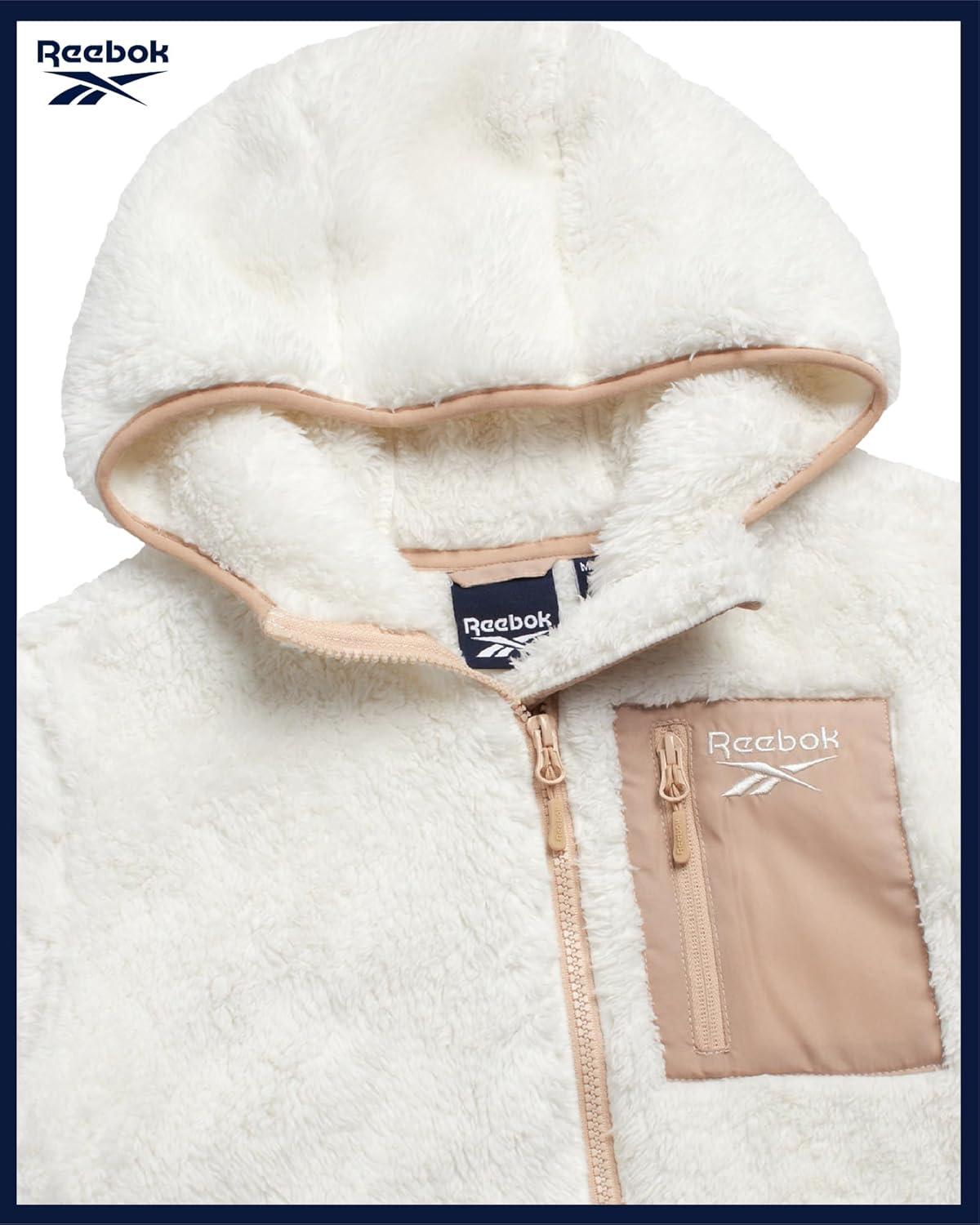 imageReebok Girls Fleece Jacket  Full Zip Soft Sherpa Faux Fur Coat Hooded Winter Jacket  Warm Teddy Coat for GirlsCream
