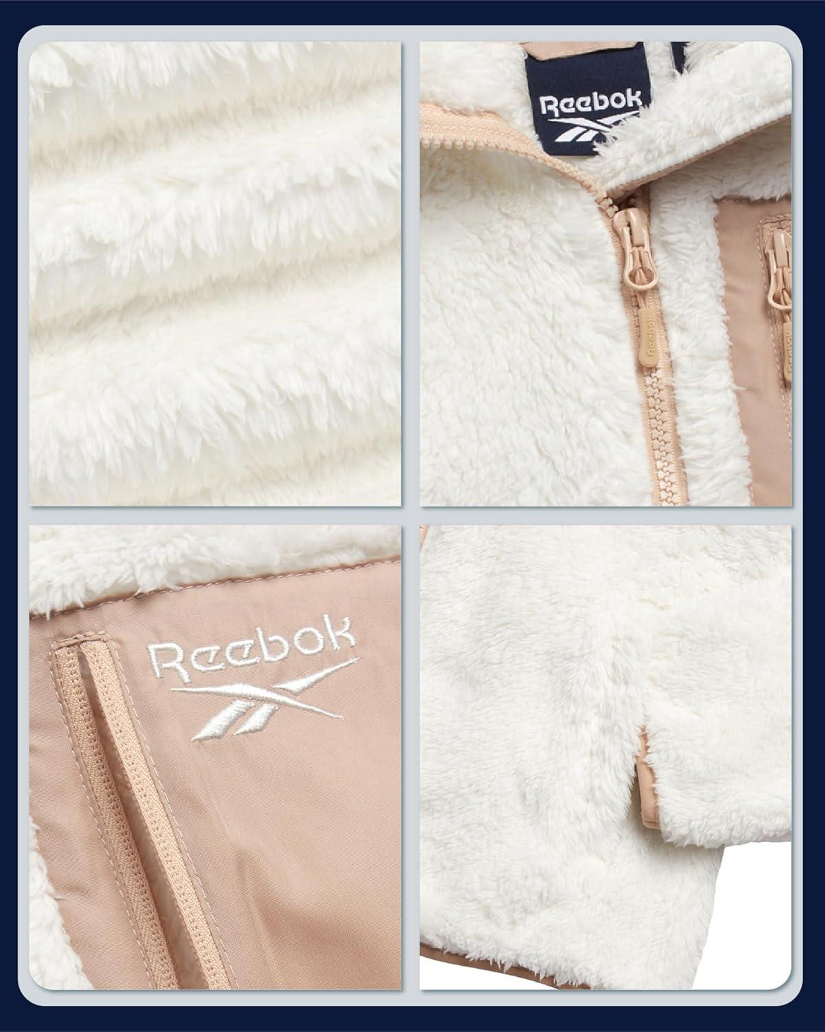 Reebok Girls Fleece Jacket – Full Zip Soft Sherpa Faux Fur Coat Hooded Winter Jacket – Warm Teddy Coat for Girls(Cream)