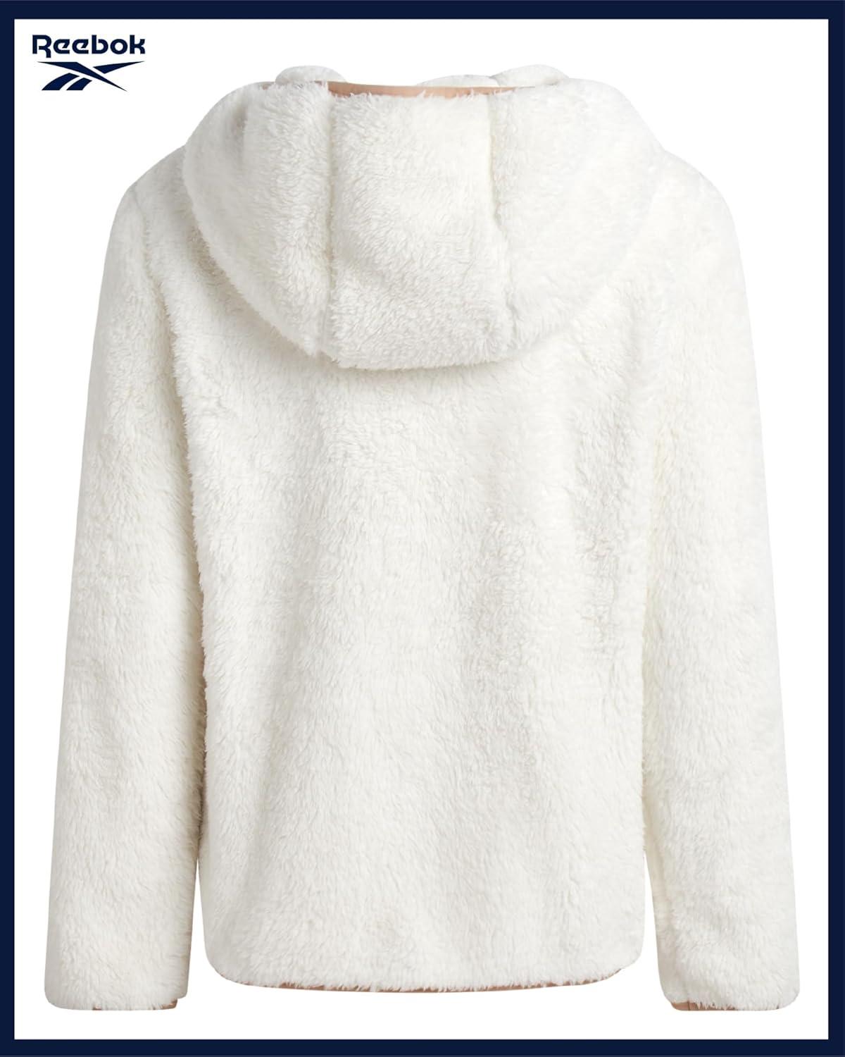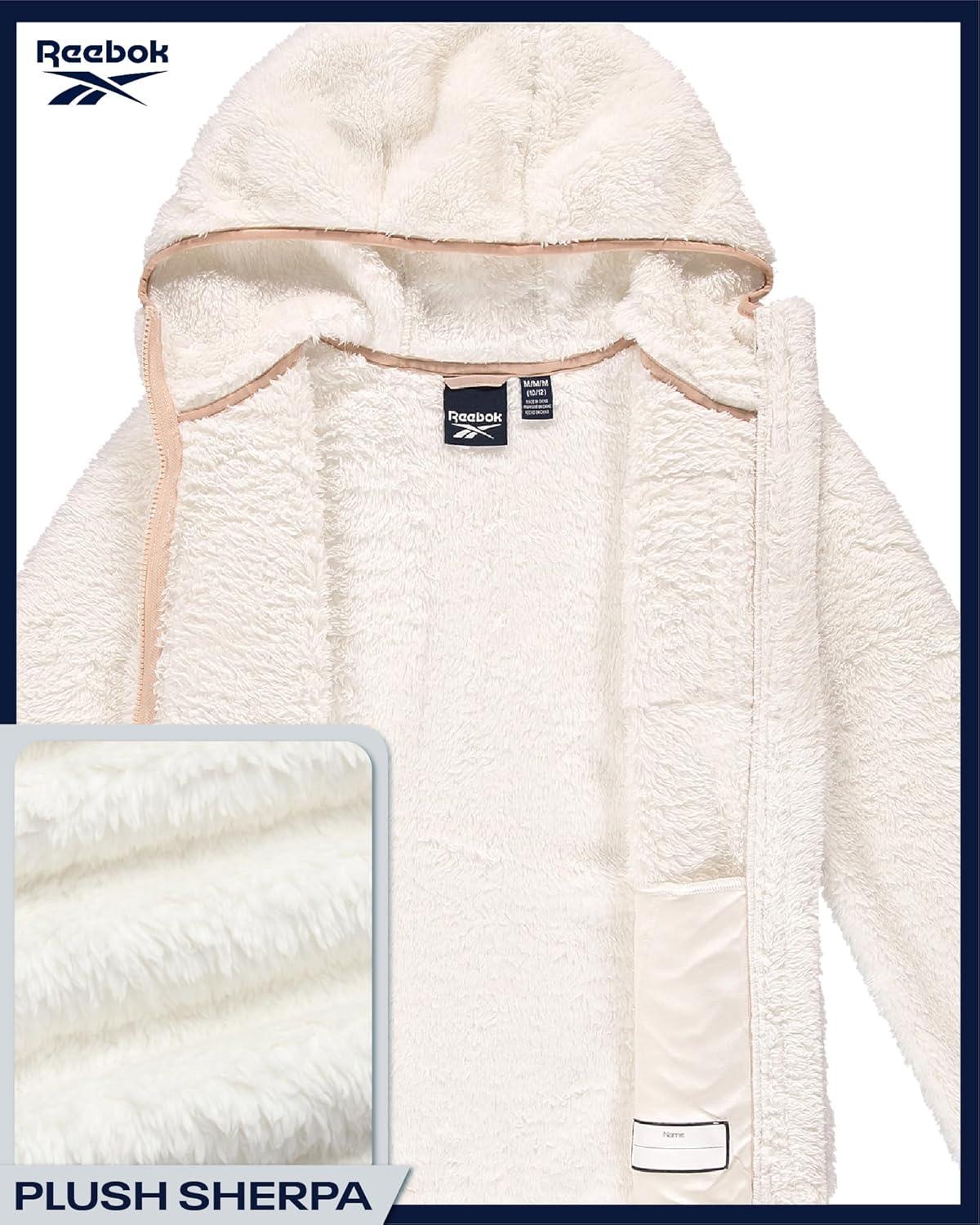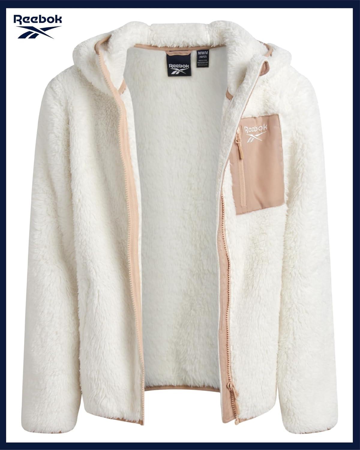 Reebok Girls Fleece Jacket - Full Zip Soft Sherpa Faux Fur Coat Hooded Winter Jacket - Warm Teddy Coat for Girls(Cream)