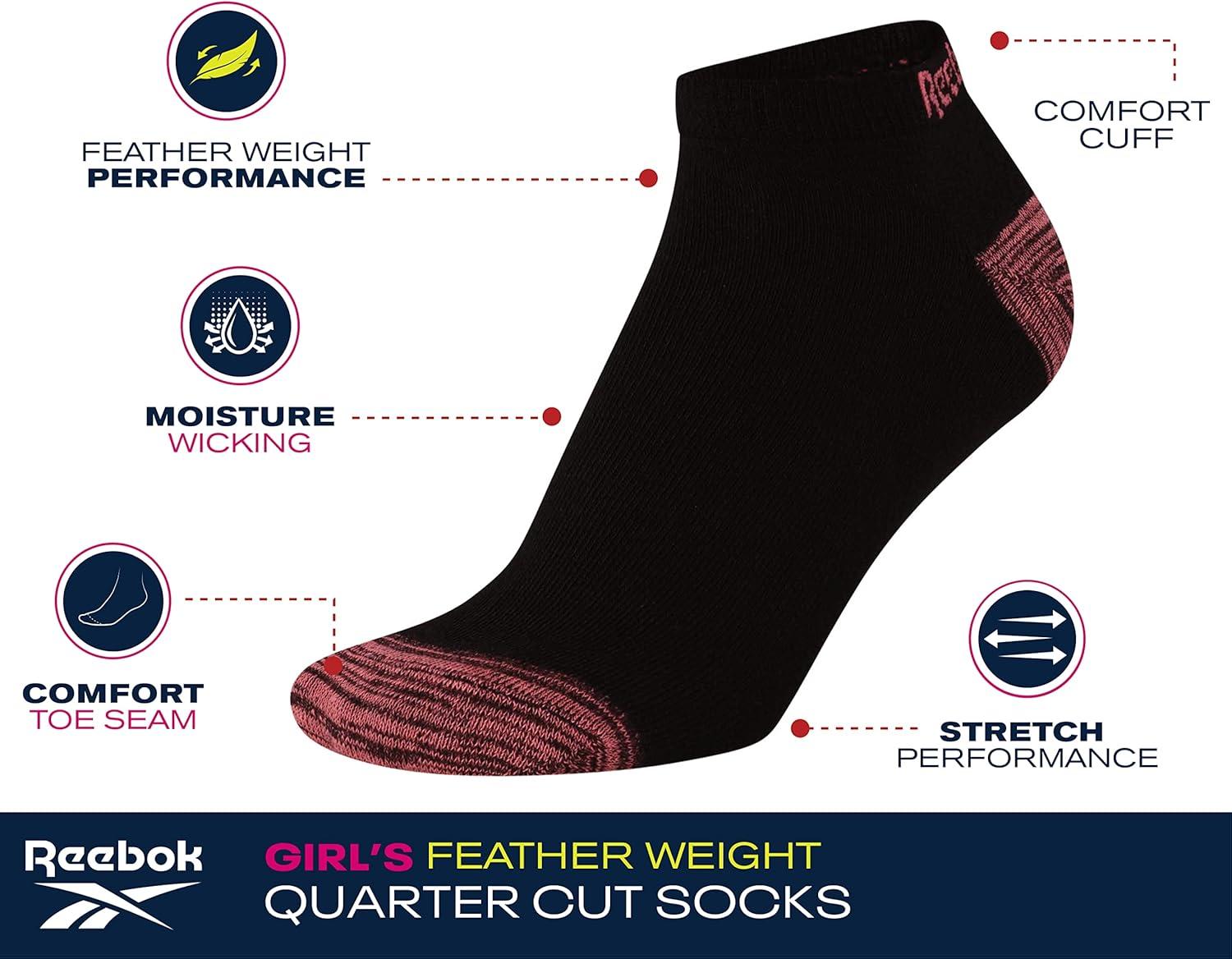 Reebok Girl's Low Cut Basic Socks are going to give your child the perfect level of performance they expect from an athletic sock. Whether on the court, in the gym, or on the track, these socks were designed for playing hard. The great fit hugs the foot and stays in place while offering superior cushioning so your athlete can go the distance. Features authentic Reebok logo.