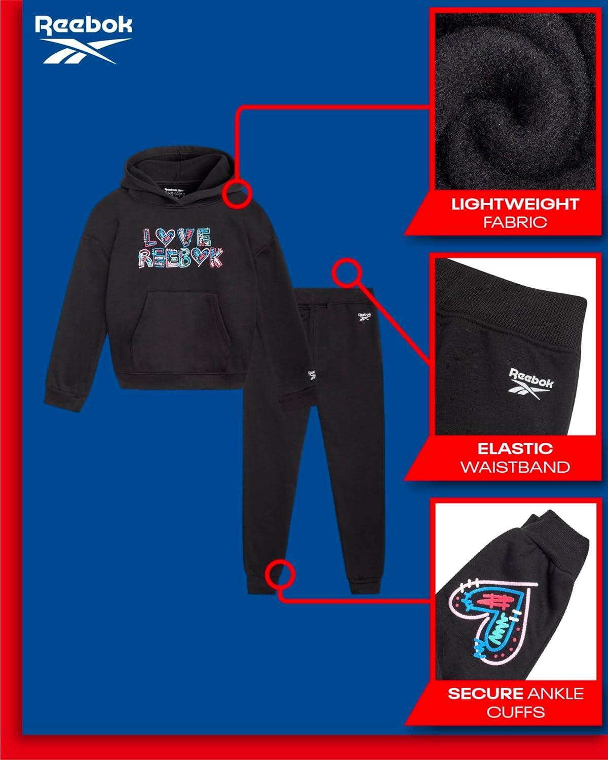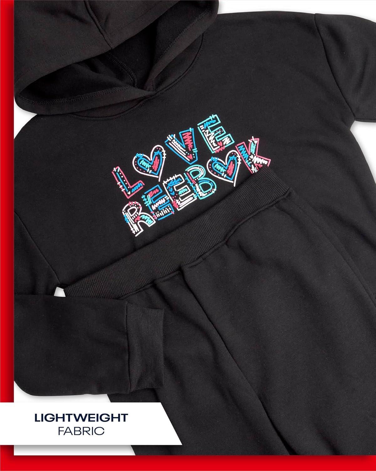 Reebok Girls’ Sweatsuit Set – 2 Piece Fleece Hoodie and Jogger Sweatpants (Size 7-12)(Black Love)