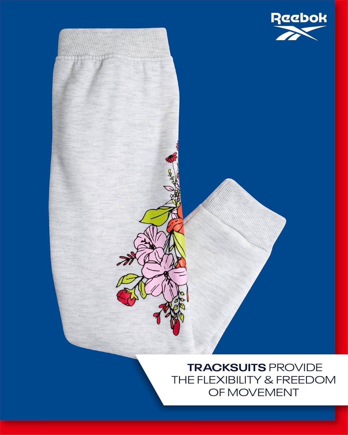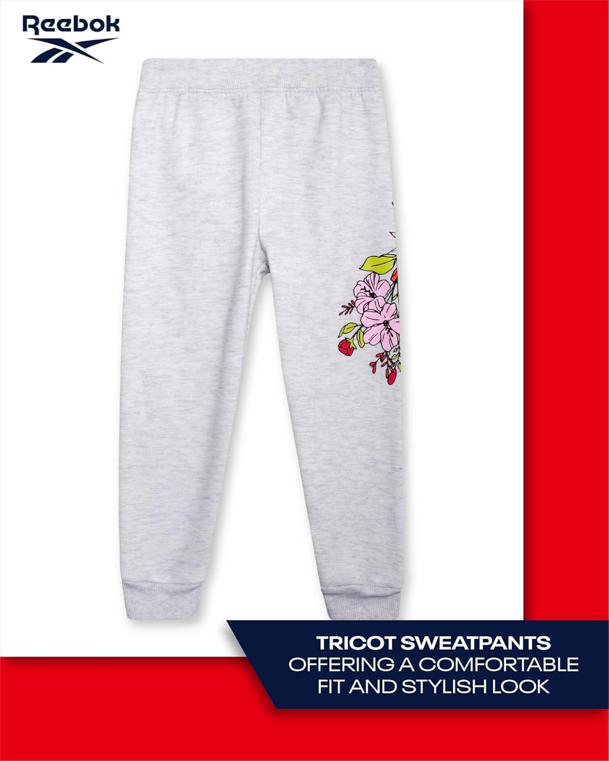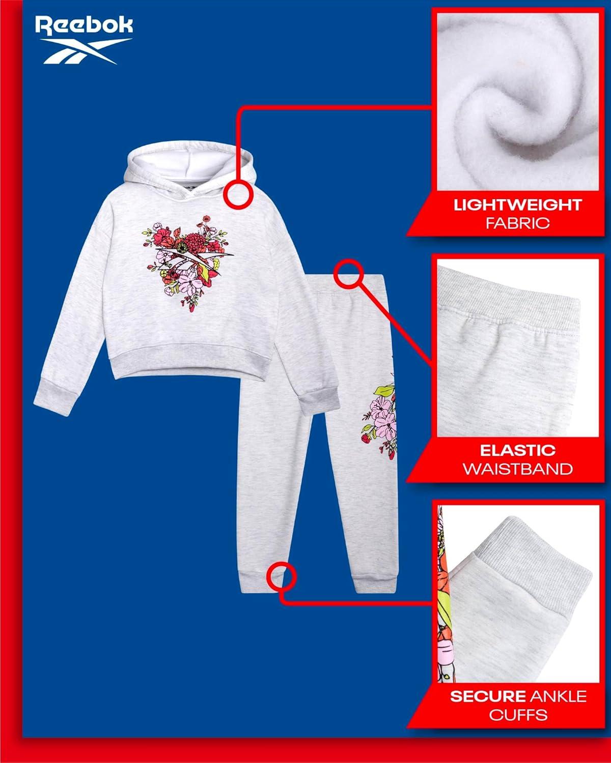 Reebok Girls’ Sweatsuit Set – 2 Piece Fleece Hoodie and Jogger Sweatpants (Size 7-12)(White Grey Heather)