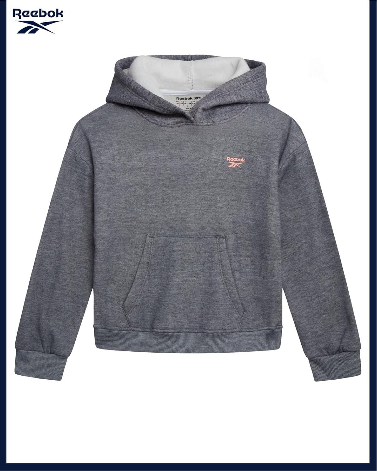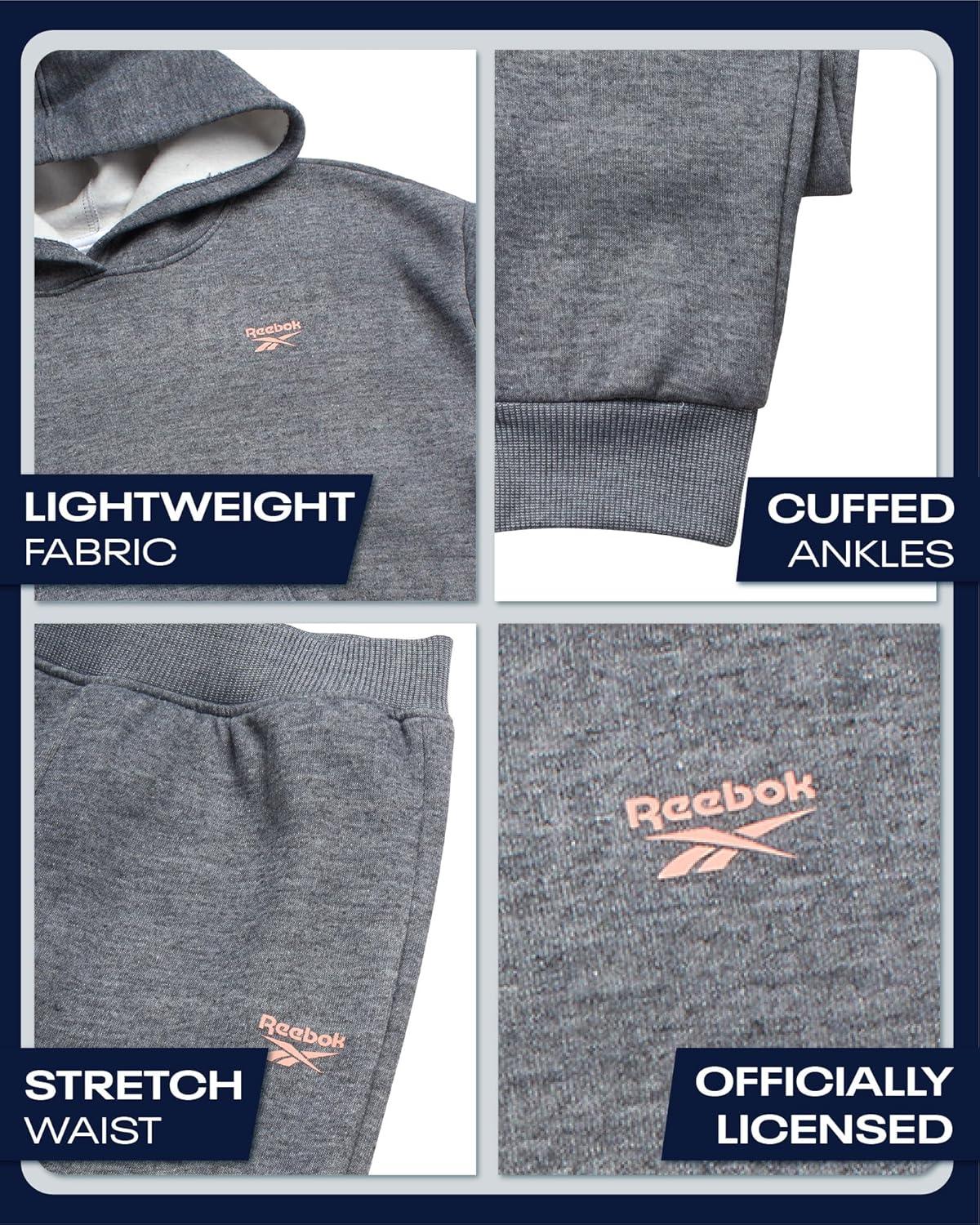 Reebok Girls Sweatsuit Set – 2 Piece Soft Long Sleeve Hoodie Sweatshirt and Sweatpants for Girls – Athletic Sweatsuit(Light Grey Heather)