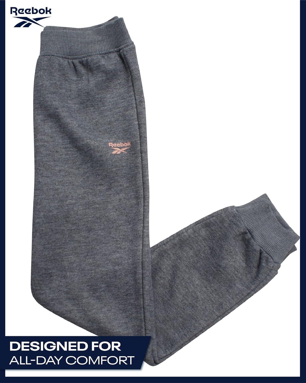 Reebok Girls Sweatsuit Set – 2 Piece Soft Long Sleeve Hoodie Sweatshirt and Sweatpants for Girls – Athletic Sweatsuit(Dark Grey Heather 2)