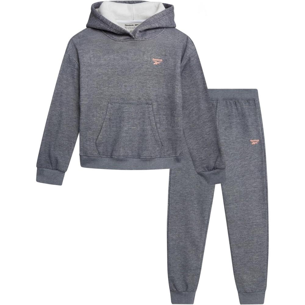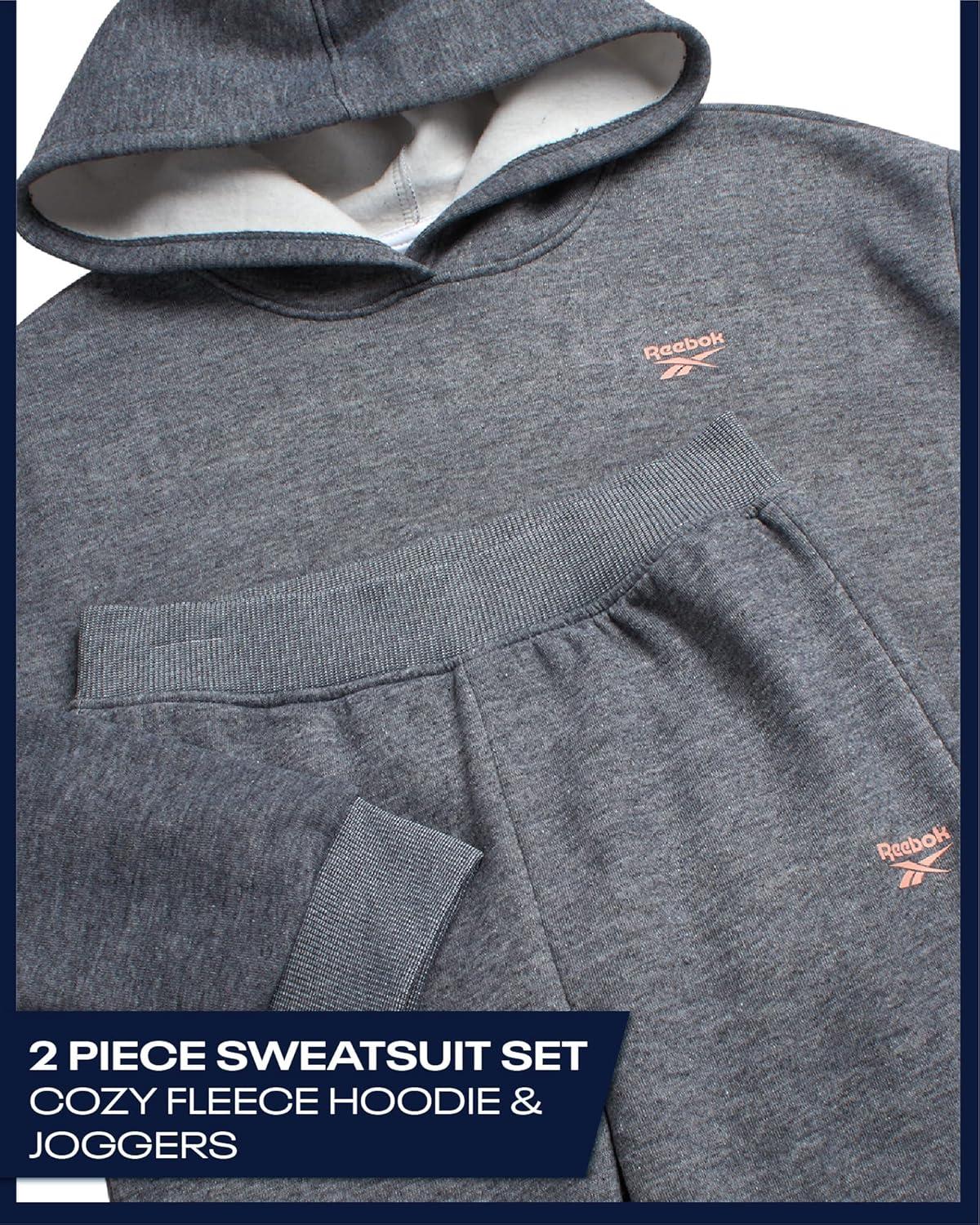 Reebok Girls Sweatsuit Set - 2 Piece Soft Long Sleeve Hoodie Sweatshirt and Sweatpants for Girls - Athletic Sweatsuit(Dark Grey Heather 2)