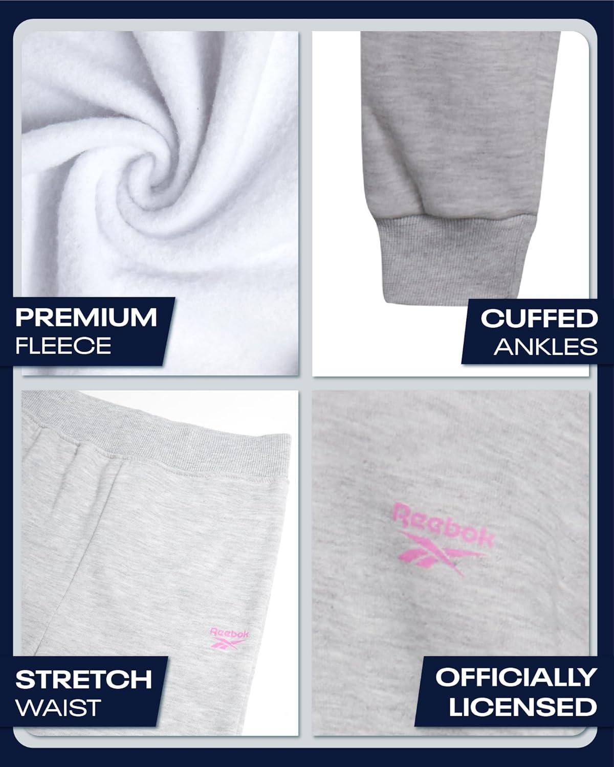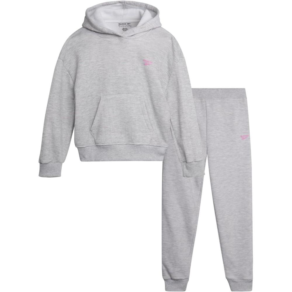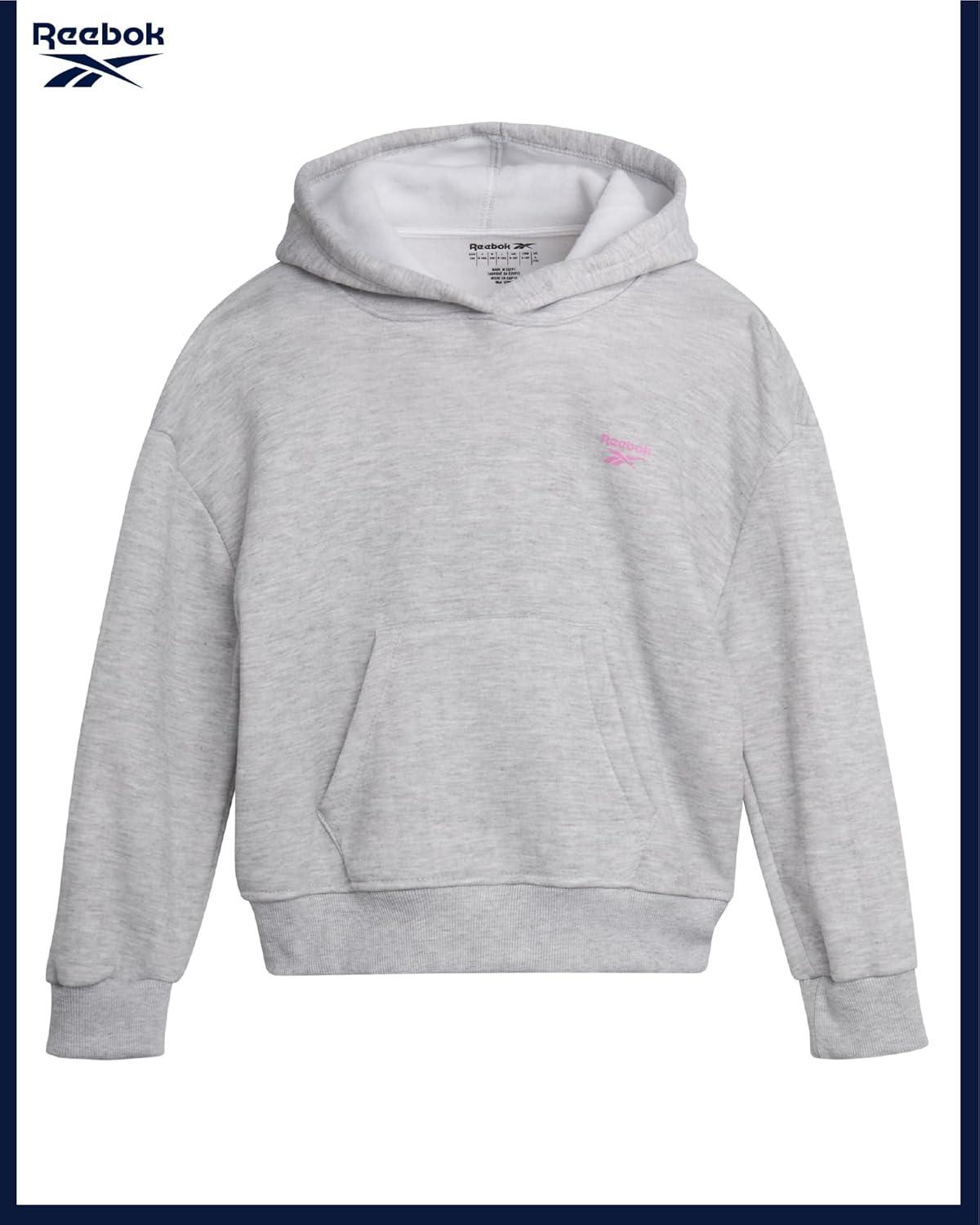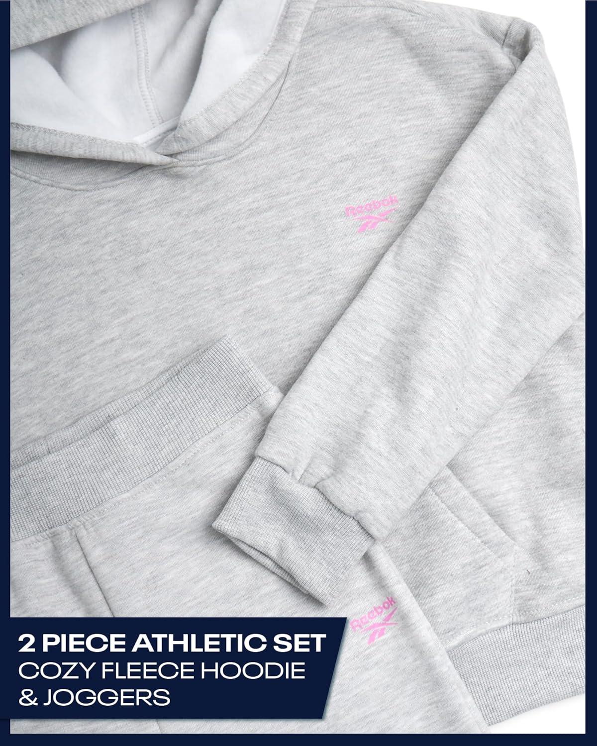 Reebok Girls Sweatsuit Set - 2 Piece Soft Long Sleeve Hoodie Sweatshirt and Sweatpants for Girls - Athletic Sweatsuit(Heather Grey)