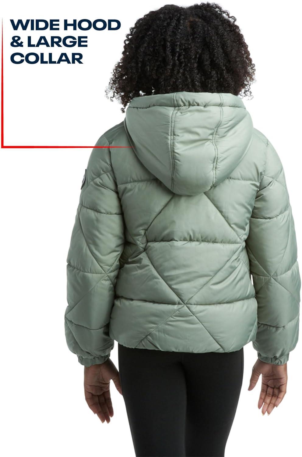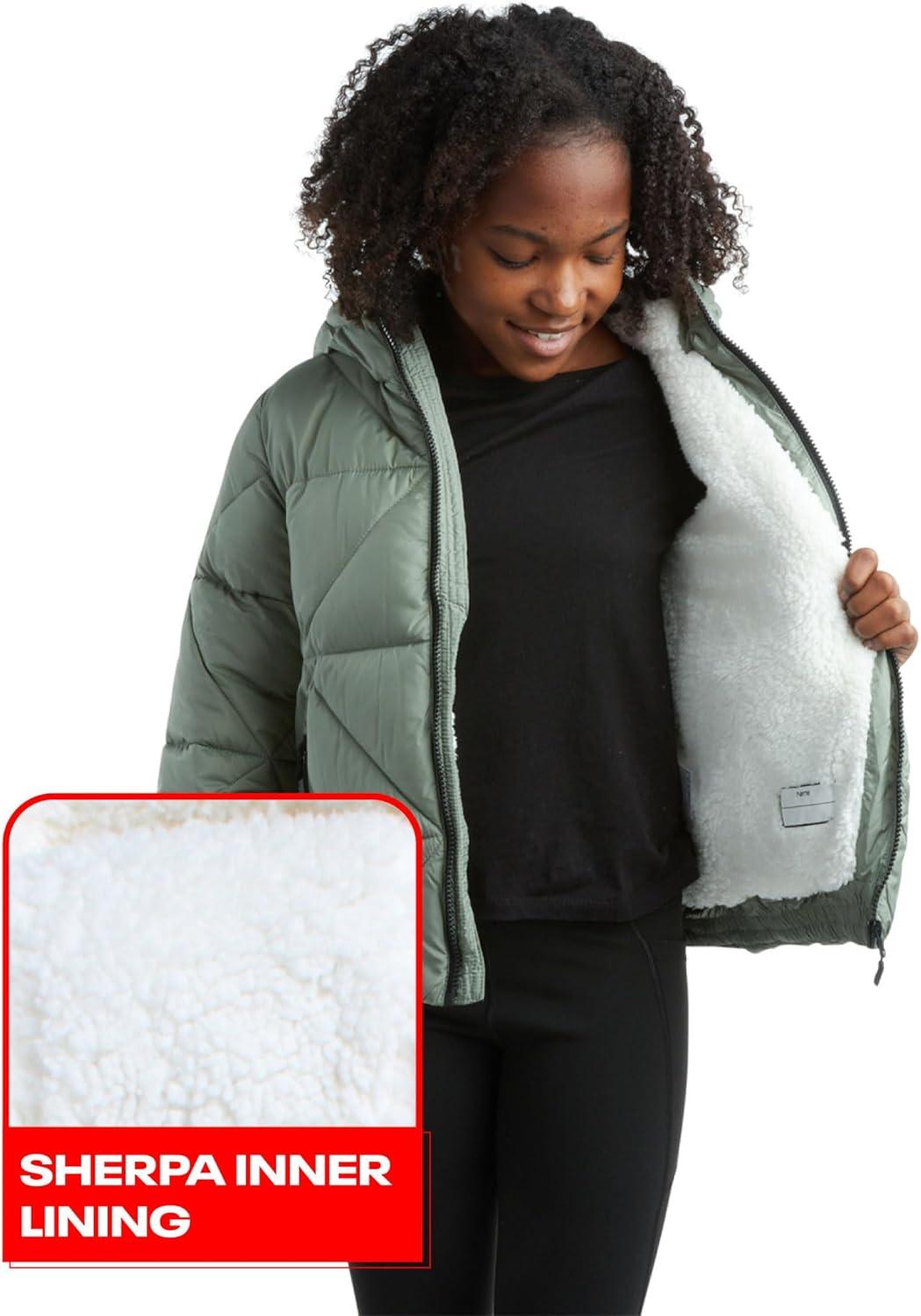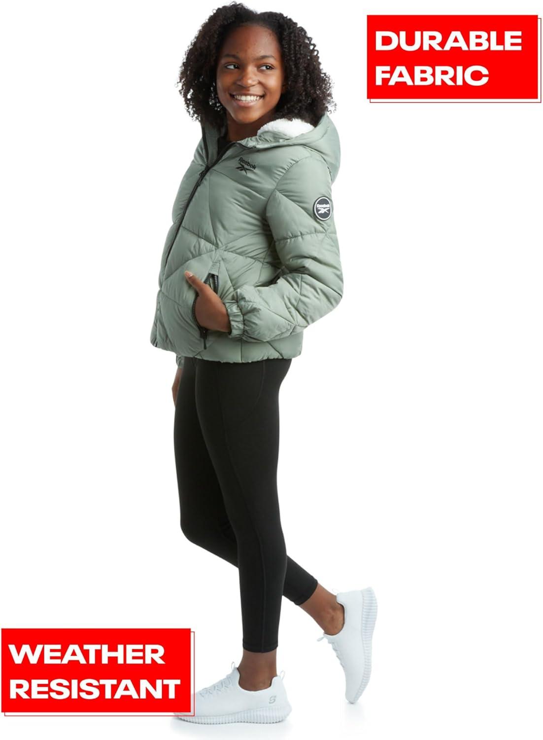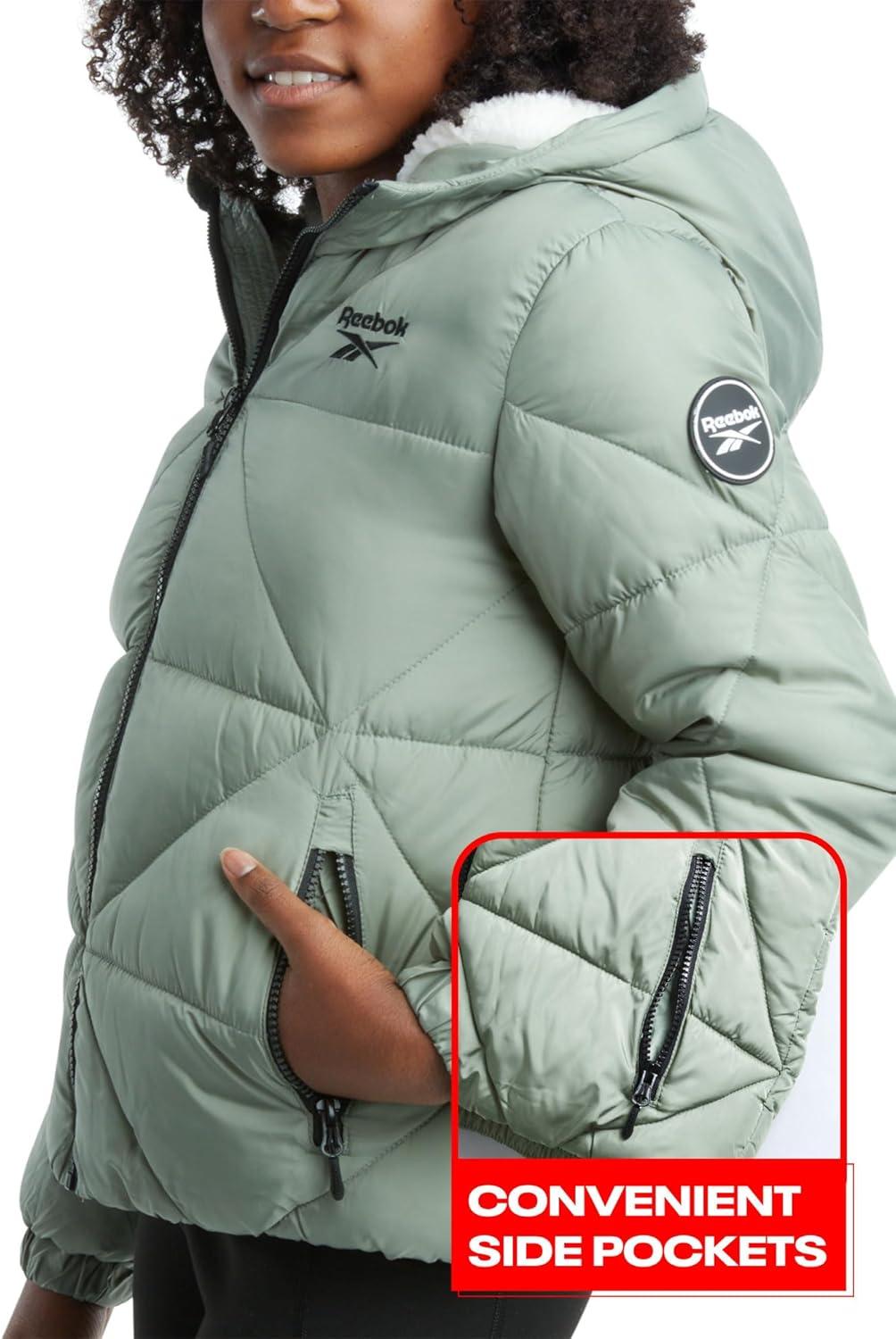 Reebok Girls' Winter Coat - Heavyweight Quilted Sherpa Fur Lined Cropped Puffer Parka - Casual Jacket for Girls (4-16)(Sage)
