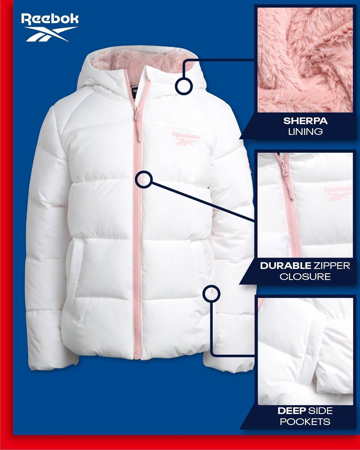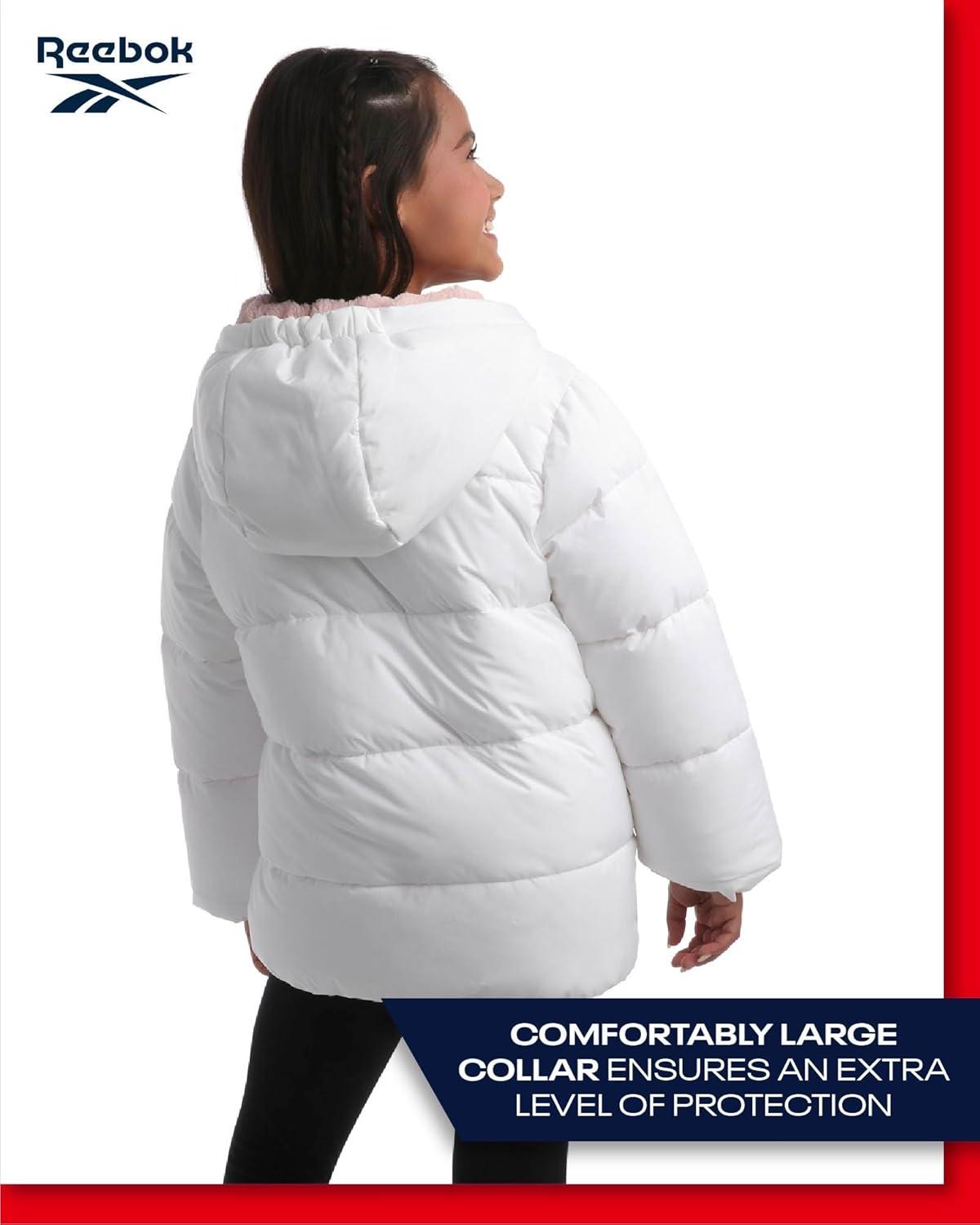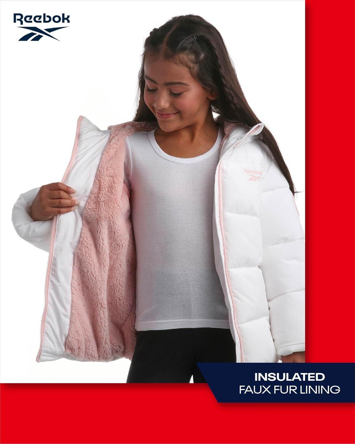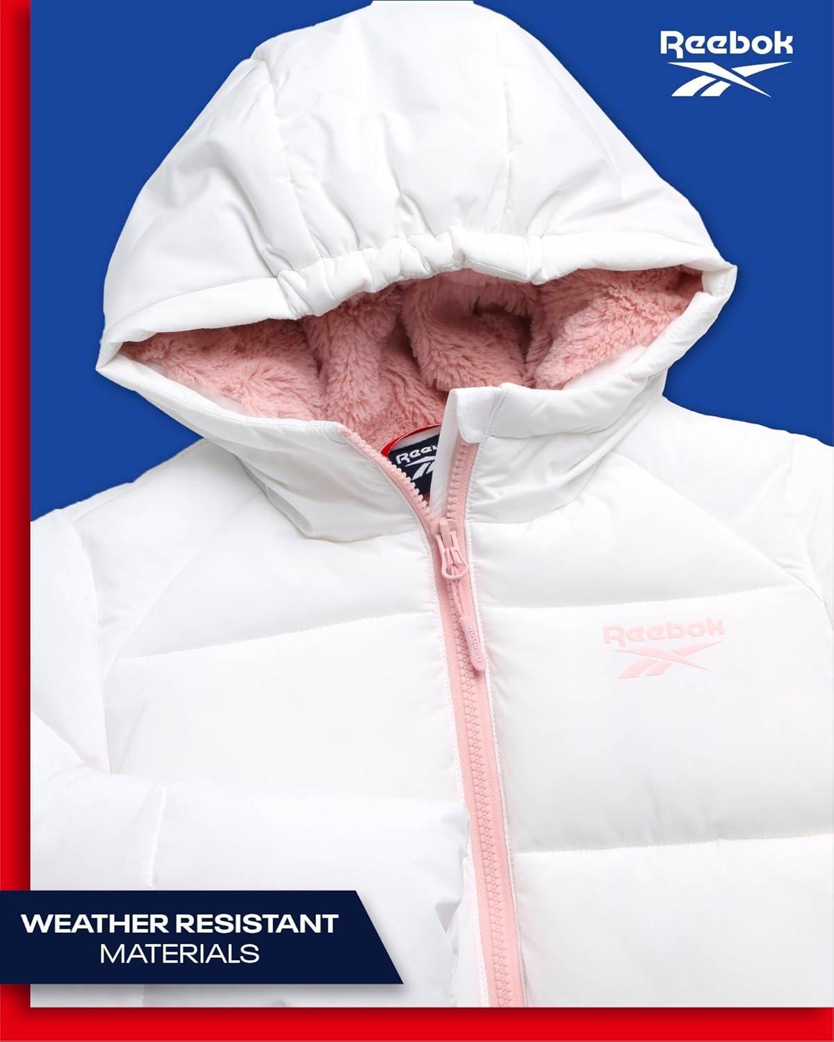 imageReebok Girls Winter Jacket  Heavyweight Quilted Puffer Parka Coat  Sherpa Fleece Lined Ski Jacket for Girls 416White